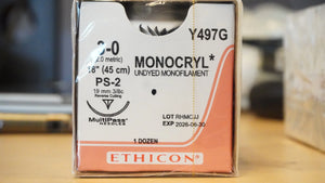 ETHICON | Y497G | BOX OF 36 | Monocryl UNDYED Monofilament 3-0 18"