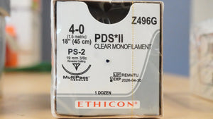 ETHICON | Z496G | BOX OF 12 | PDS II Polydioxanone Suture CLEAR Monofilament 4-0 18"