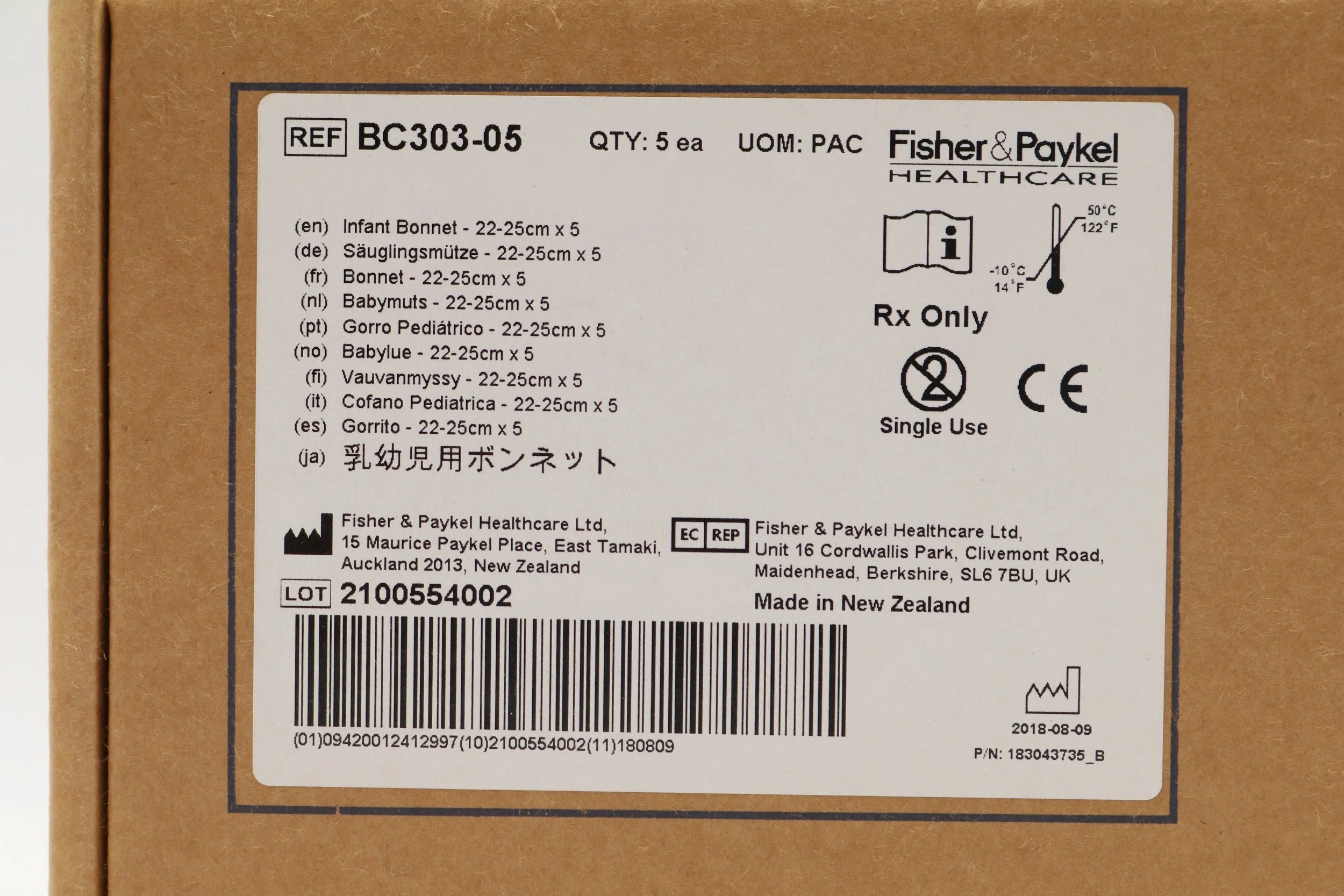 Fisher Paykel | BC303-05 | BOX OF 5 | Infant Interface Accessories - Infant Bonnet, 22-25 cm