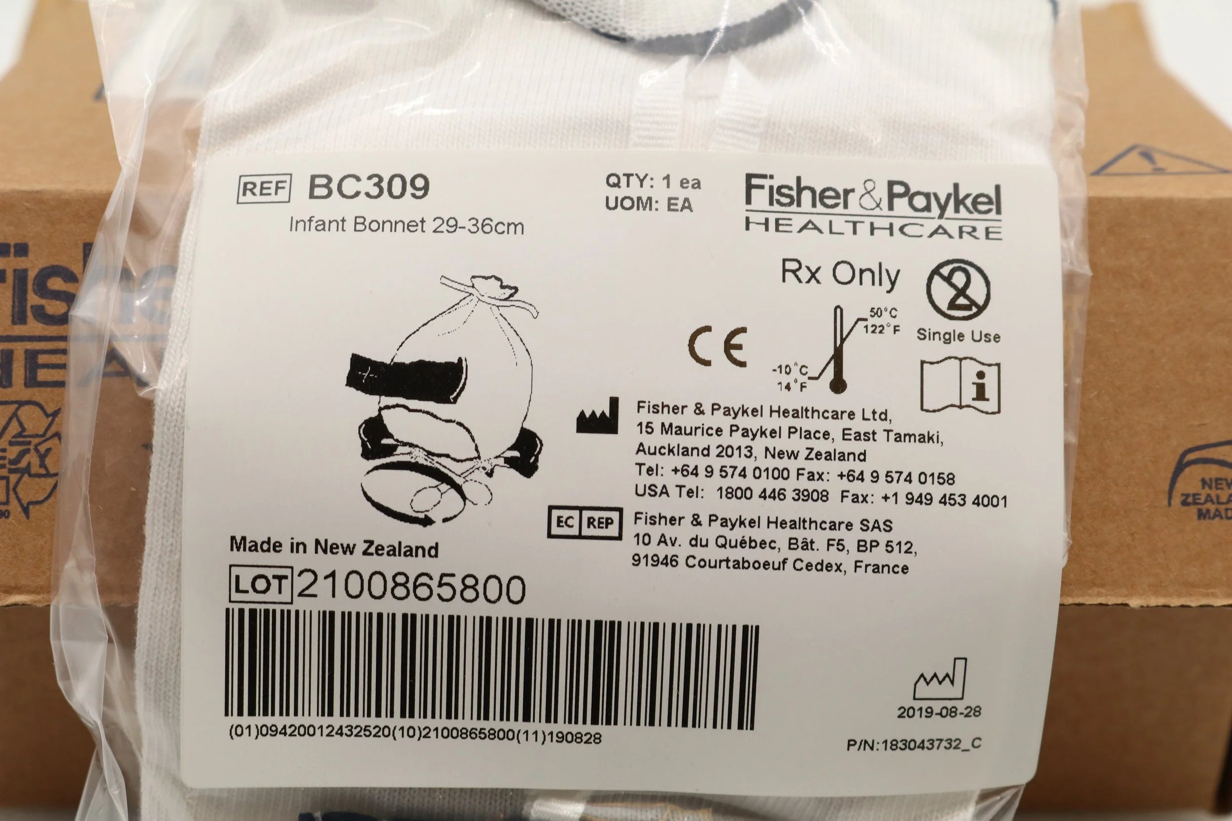 Fisher Paykel | BC309-05 | BOX OF 5 | Infant Interface Accessories - Infant Bonnet, 29-36 cm