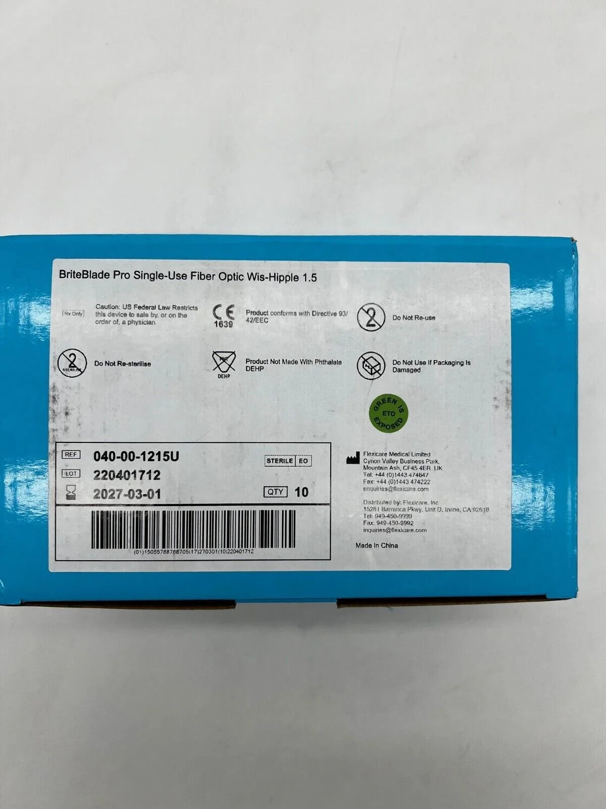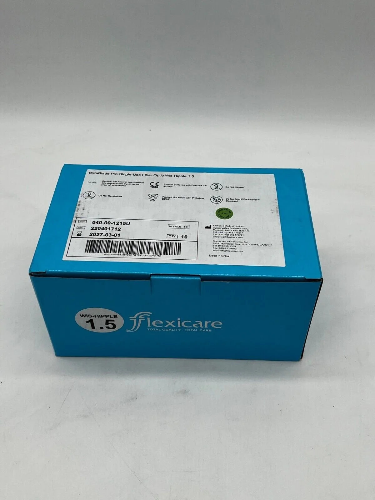 Flexicare 040-00-1215U BriteBlade Pro Fiber Optic Metal Disposable Single-Use Laryngoscope Blade Fiber Optic Wis-Hipple 1.5 Box of 10