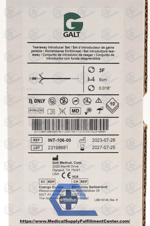 Galt | INT-106-00 | In Date | Eaches | Teraway Introducer Set 3F 5 cm