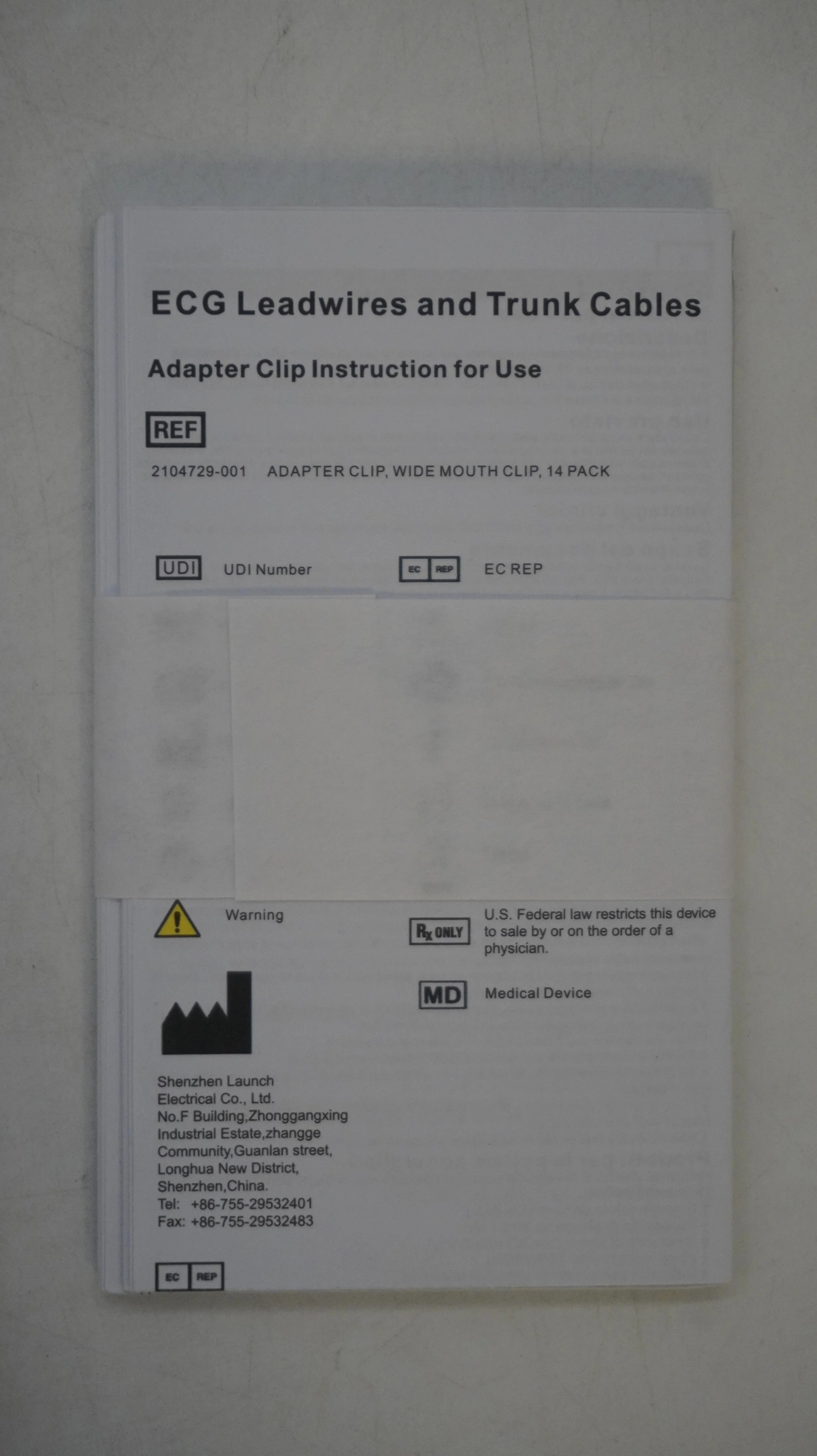 GE Medical | 2104729-001 | NO DATE | EACHES | 14 ECG Leadwires and Trunk Cables Adapter Clips