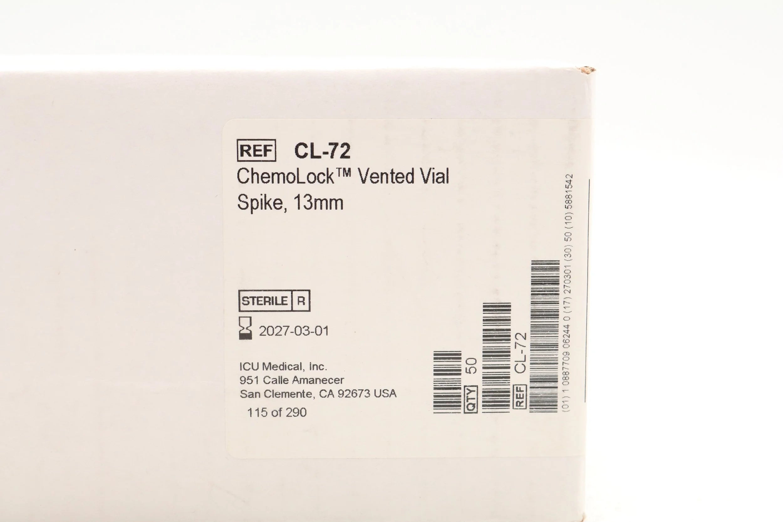 ICU Medical | CL-72 | IN-DATE | BOX OF 50 | SPIKE, VIAL CHEMOLOCK VENTED 13MM
