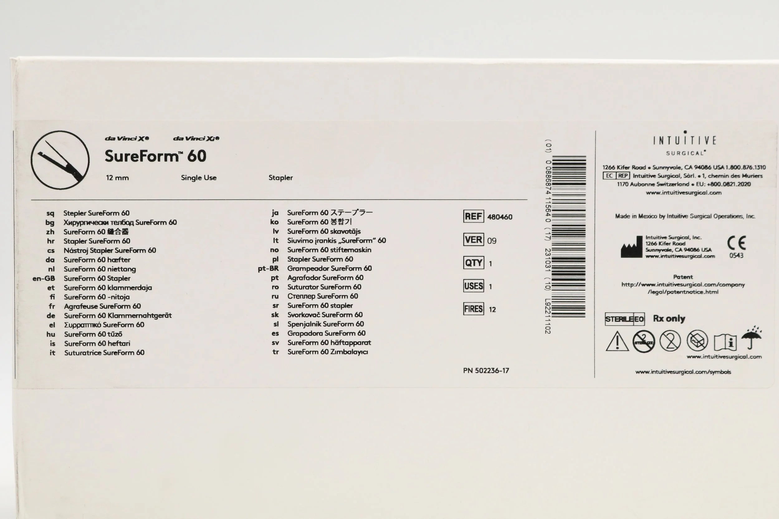 Intuitive Surgical | 480460 | DA VINCI SUREFORM 60 STAPLER, 12MM (12 FIRES)
