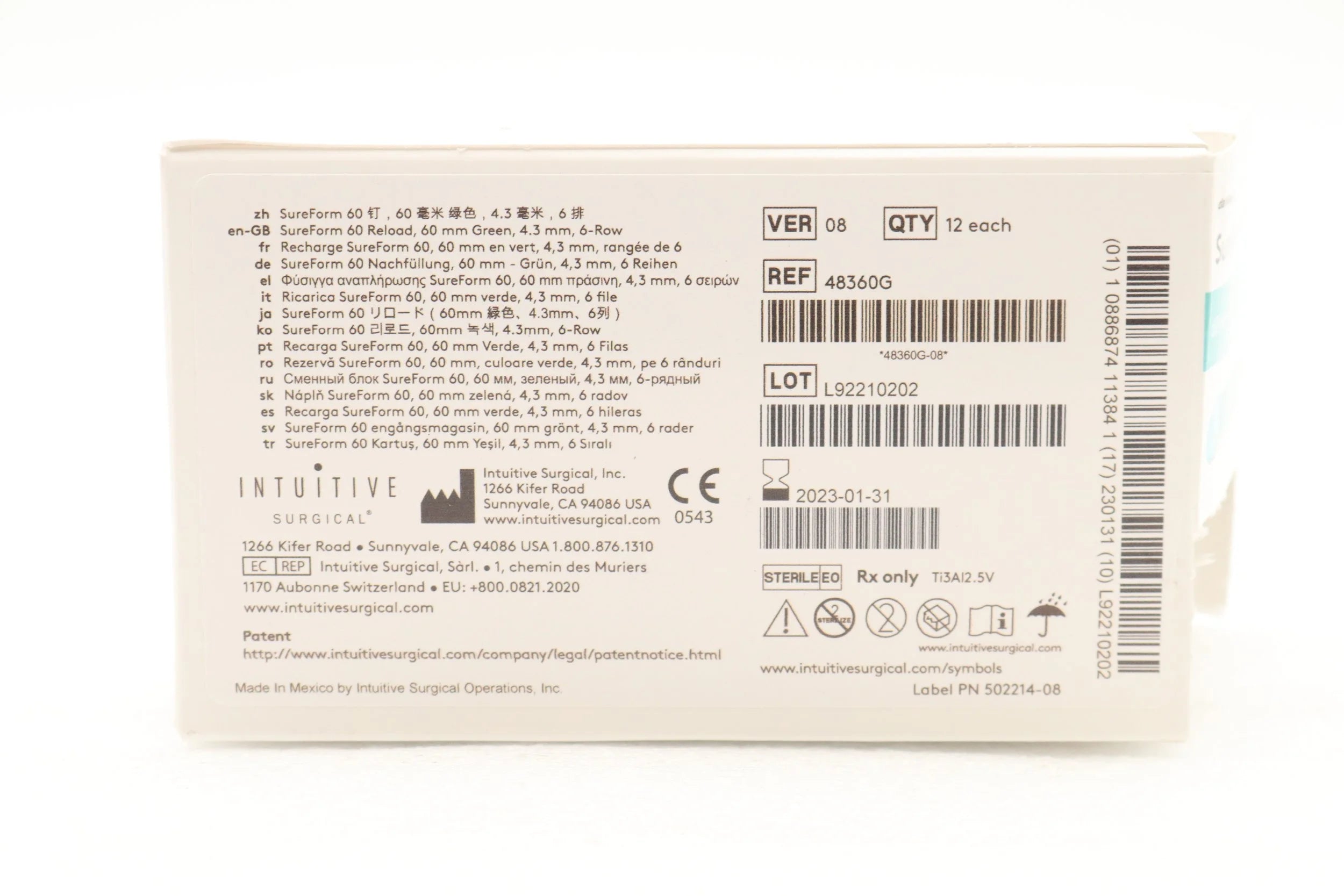 Intuitive Surgical | 48360G | EXPIRED | BOX OF 12 | da Vinci SureForm 60 Reload, Six-Row Green