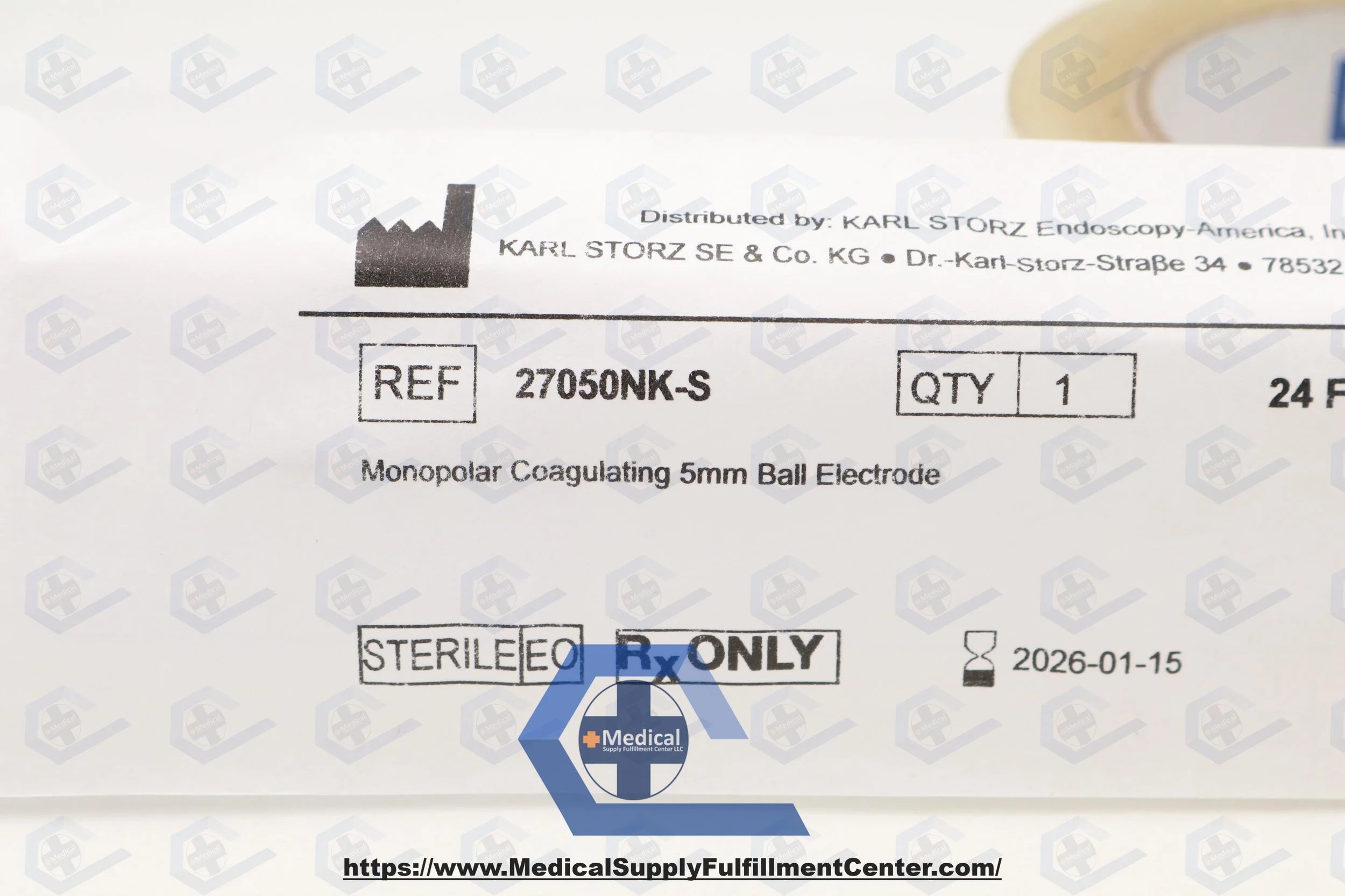 Storz | 27050NK-S | In Date | Eaches | Electrode, 5 mm dia., 0.35 mm Wire Diameter, Brown, Ball, Coagulating, Distal Tip, For 24/28 Fr Resectoscope Sheaths