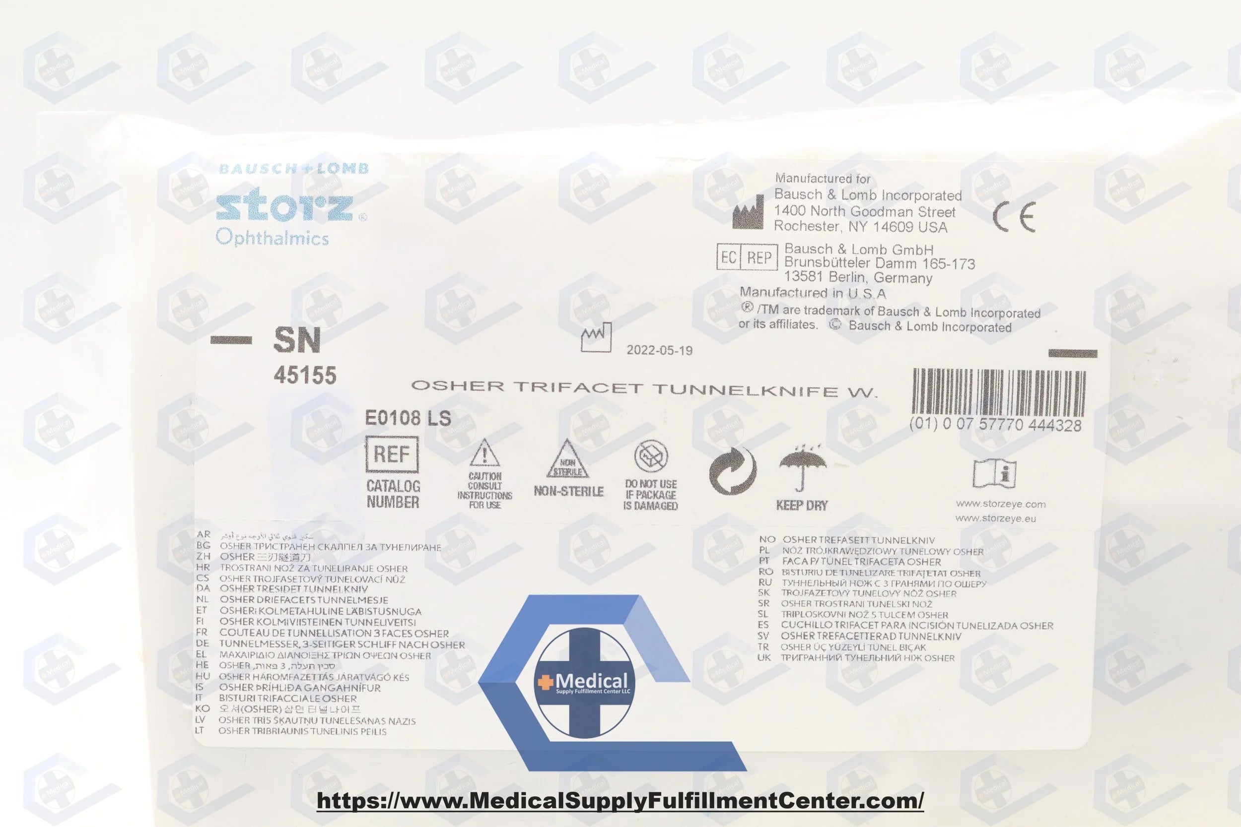 KARL STORZ | E0108-LS | NO DATE | EACHES | 45155 E0108 LS Osher Trifacet Tunnel Diamond Knife With Footplate