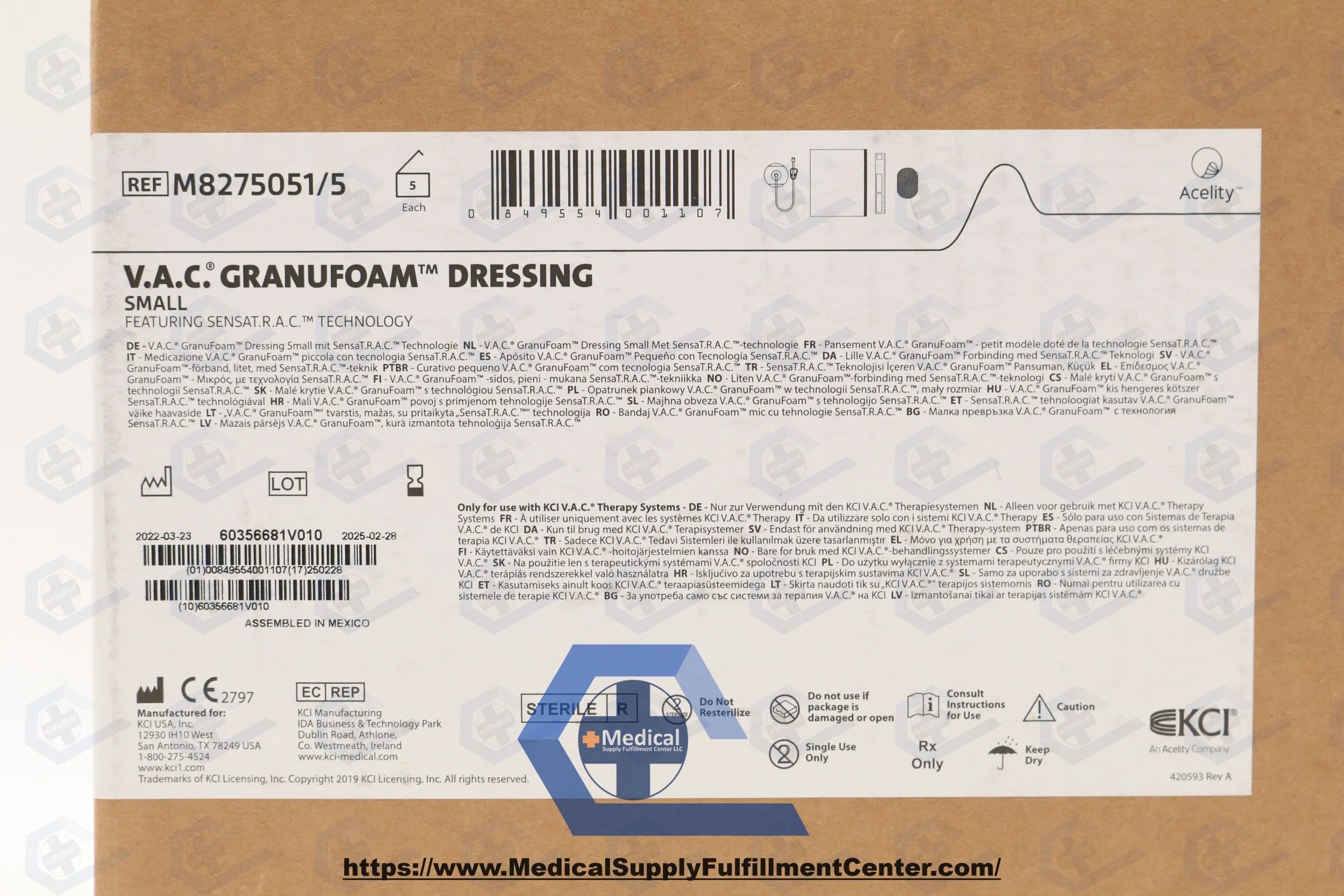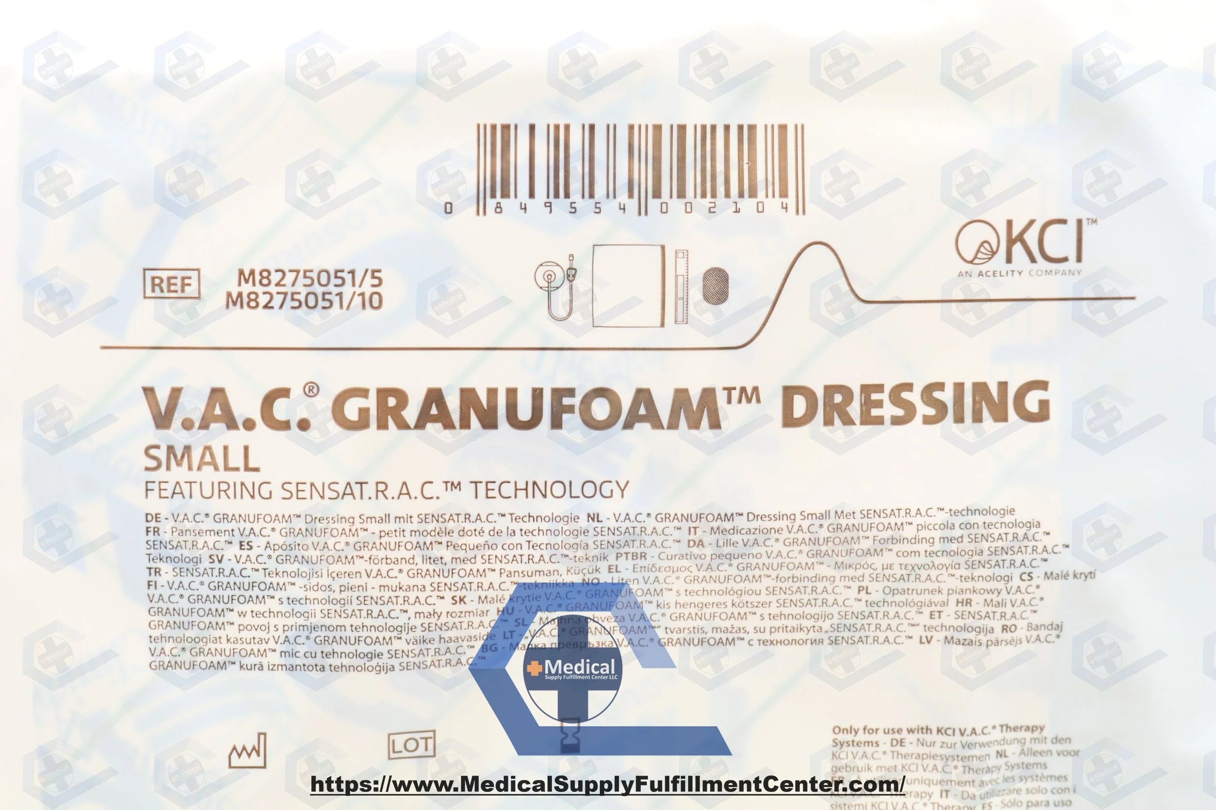 KCI | M8275051/5 | SHORTDATE | BOX OF 5 | M8275051/10 Dressing Kit, Small, 10 x 7.5 x 3.2 cm, Foam, Hydrophobic, 400-600 µ Pores, SensaT.R.A.C. Technology, Sterile, Single-Use
