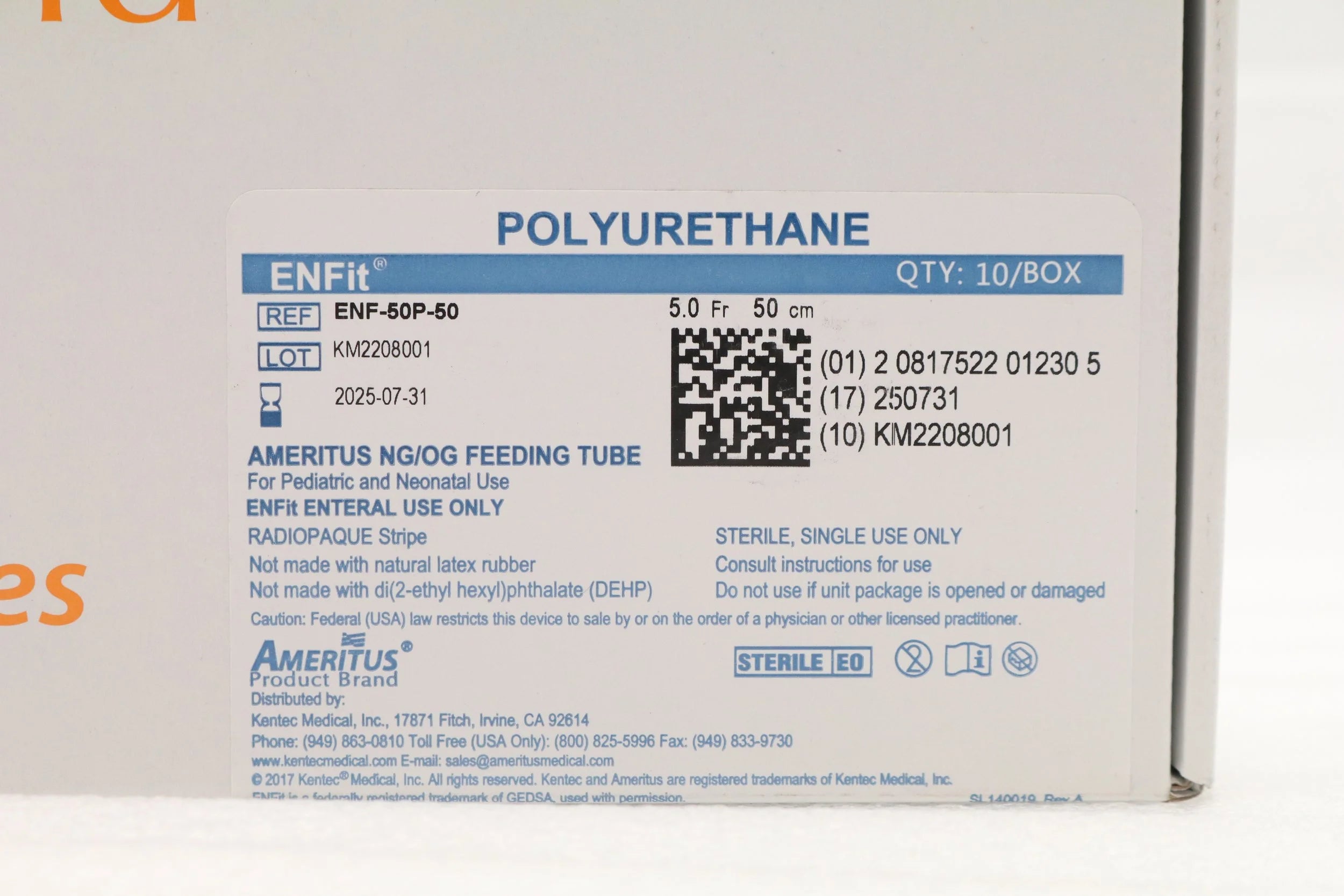 AMERITUS ENF-50P-50 SHORT DATE BOX OF 10 TUBE FEEDING POLYURETHANE 5FR 50CM SINGLE PORT ENFIT CONNECT