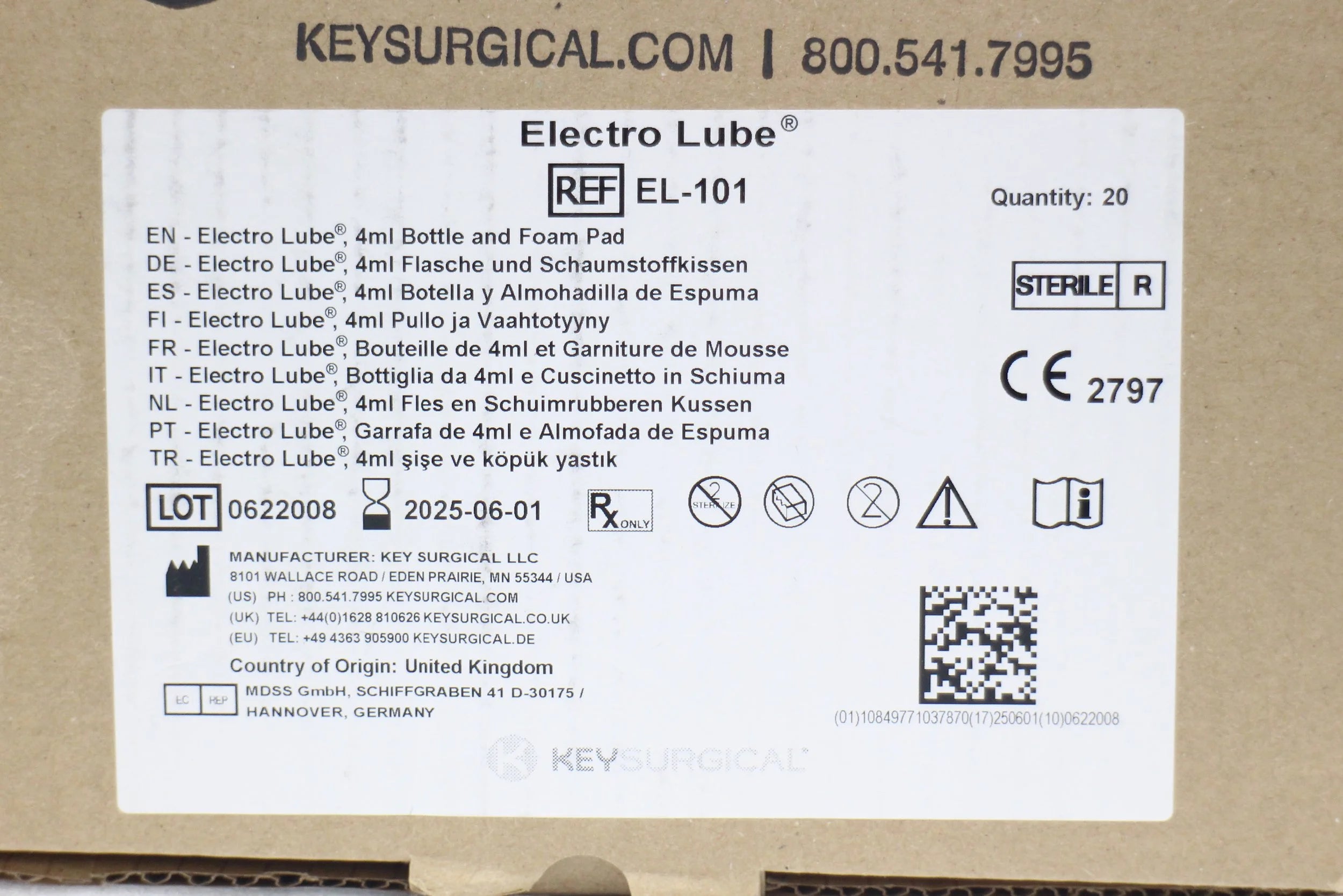 Key Surgical EL-101 Box of 20 Electro Lube 4mL Bottle and Foam Pad