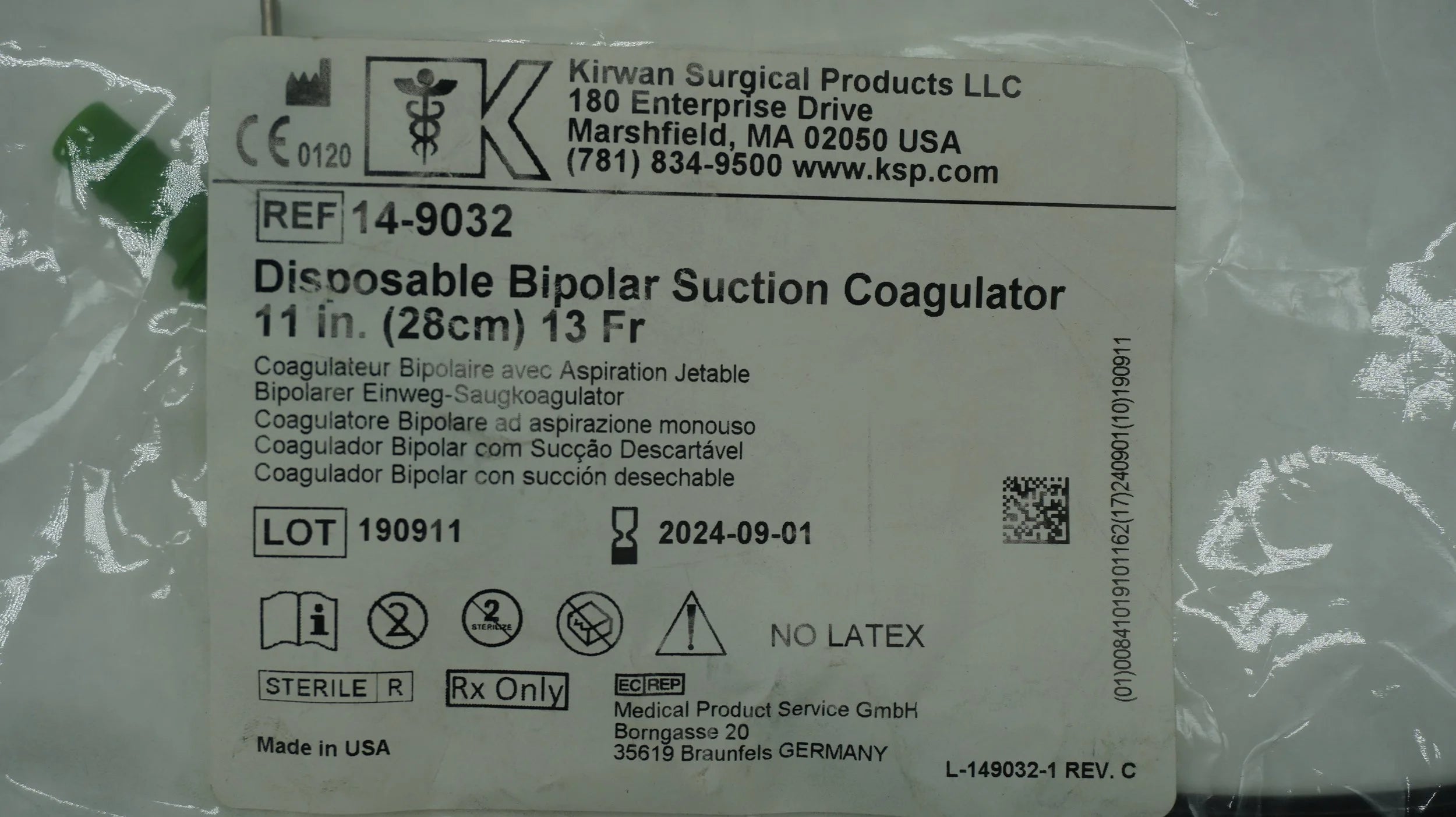 Kirwan Surgical | 14-9032 | SHORT DATE | EACHES | Dosposable Bipolar Suction Coagulator 11 in. 13 Fr