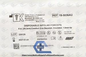 Kirwan | 19-50365AU | IN-DATE | Eaches | Liberty Disposable Bipolar Forceps 8in (20.3cm) Comfort Grip Bayonet, Insulated, 1.5mm tip