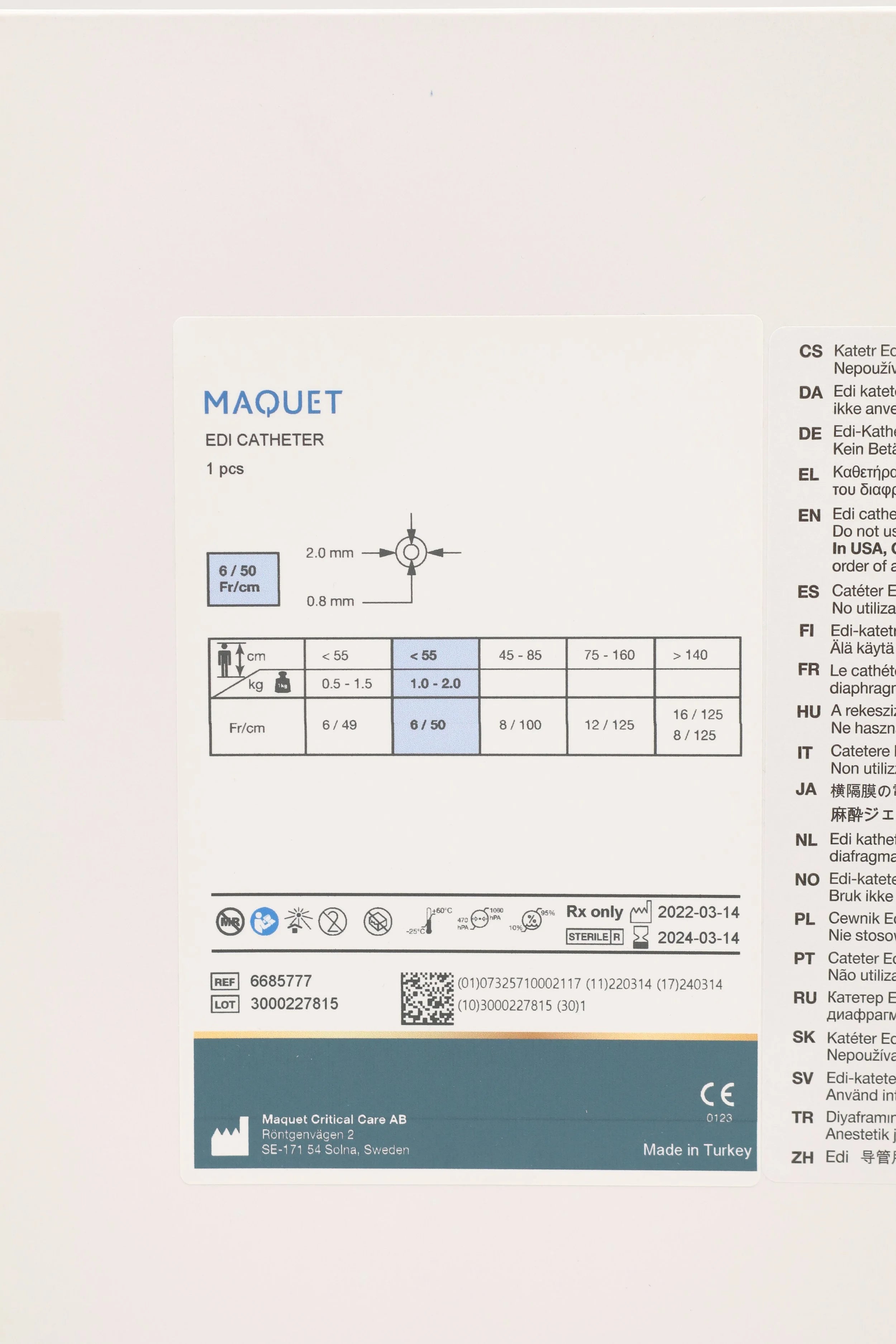 MAQUET | 6685777 | EXPIRED | BOX OF 1 | EDI CATHETER 6Fr 50cm