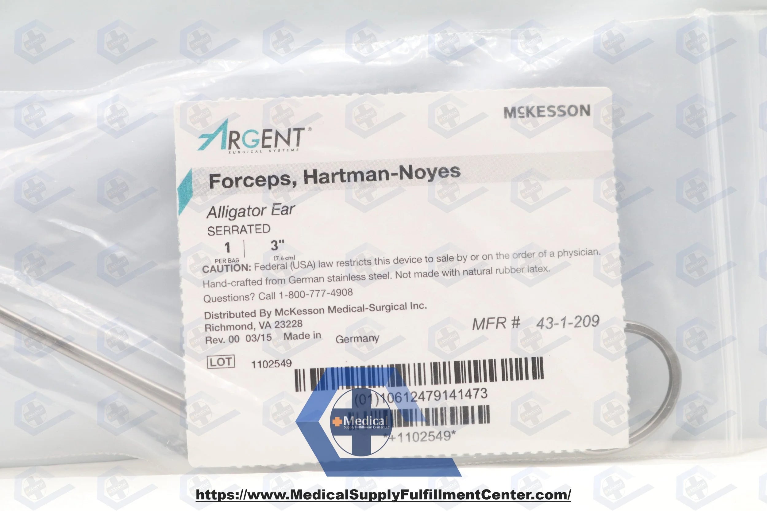 MCKESSON | 43-1-209 | NO DATE | EACHES | Alligator Forceps Argent Hartman 3-1/2"