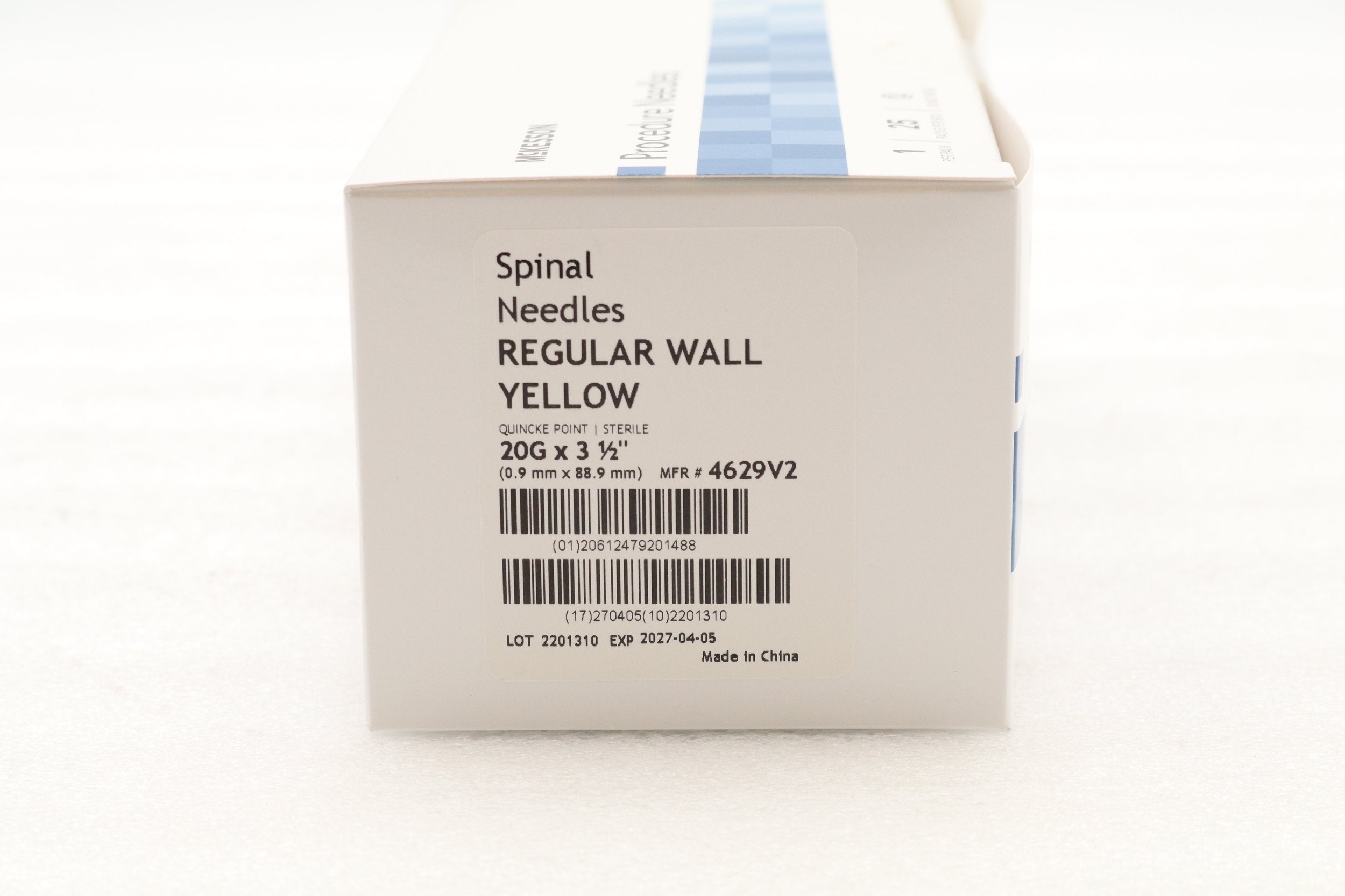 McKesson | 4629V2 | IN-DATE | CASE OF 100 | Spinal Needle, Quincke Style, Regular Wall Yellow, 20g x 3 1/2"