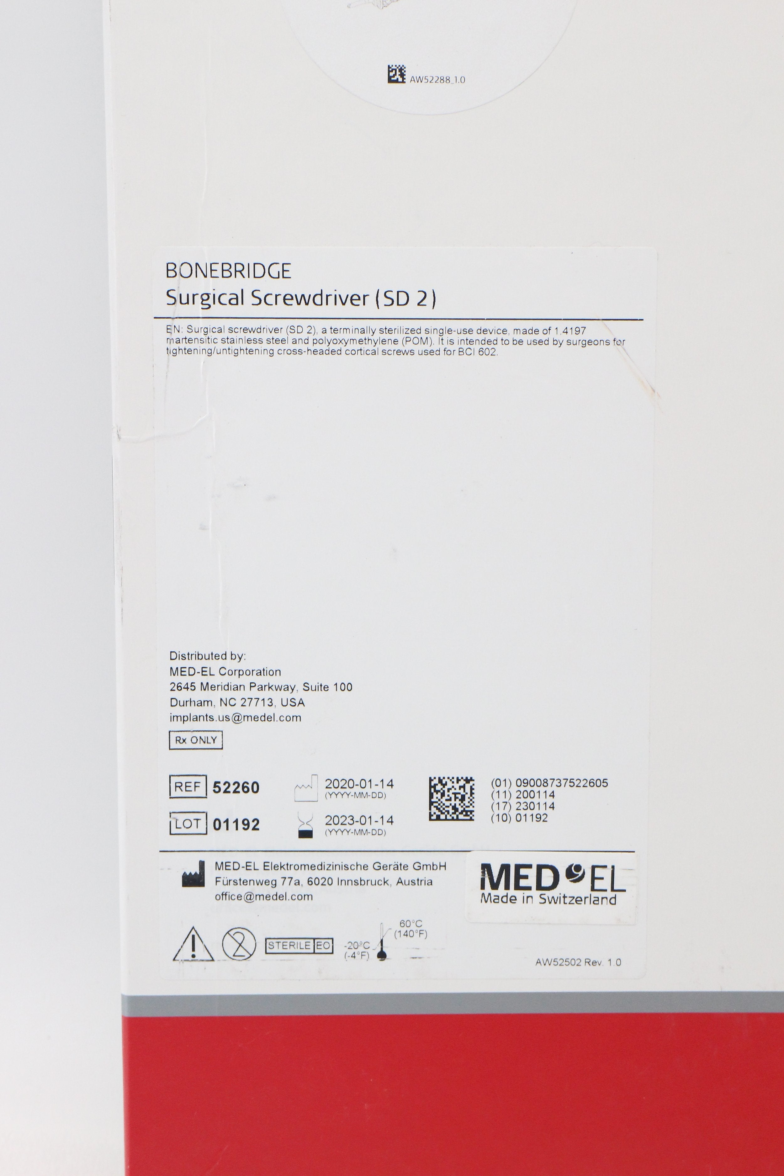 MED-EL | 52260 | BOX OF 1 | EXPIRED | BONEBRIDGE Surgical Screwdriver (SD 2)