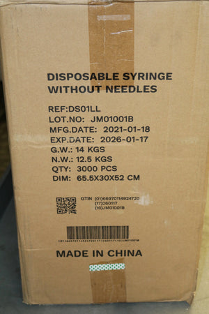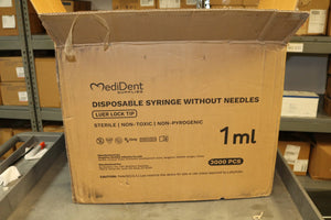 MediDent Supplies Disposable Syringe Without Needles Luer Lock Tip CASE OF 3000 Syringes