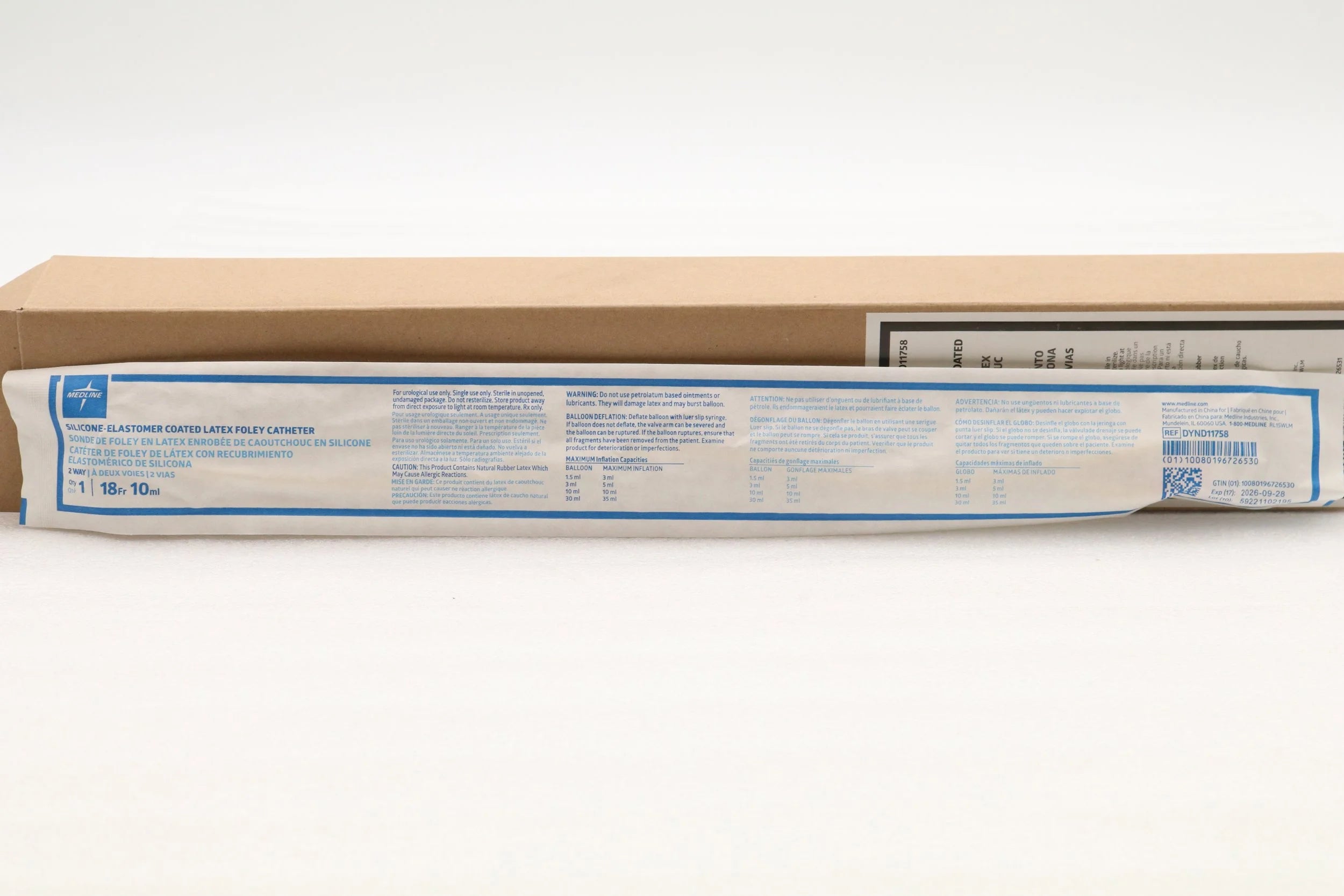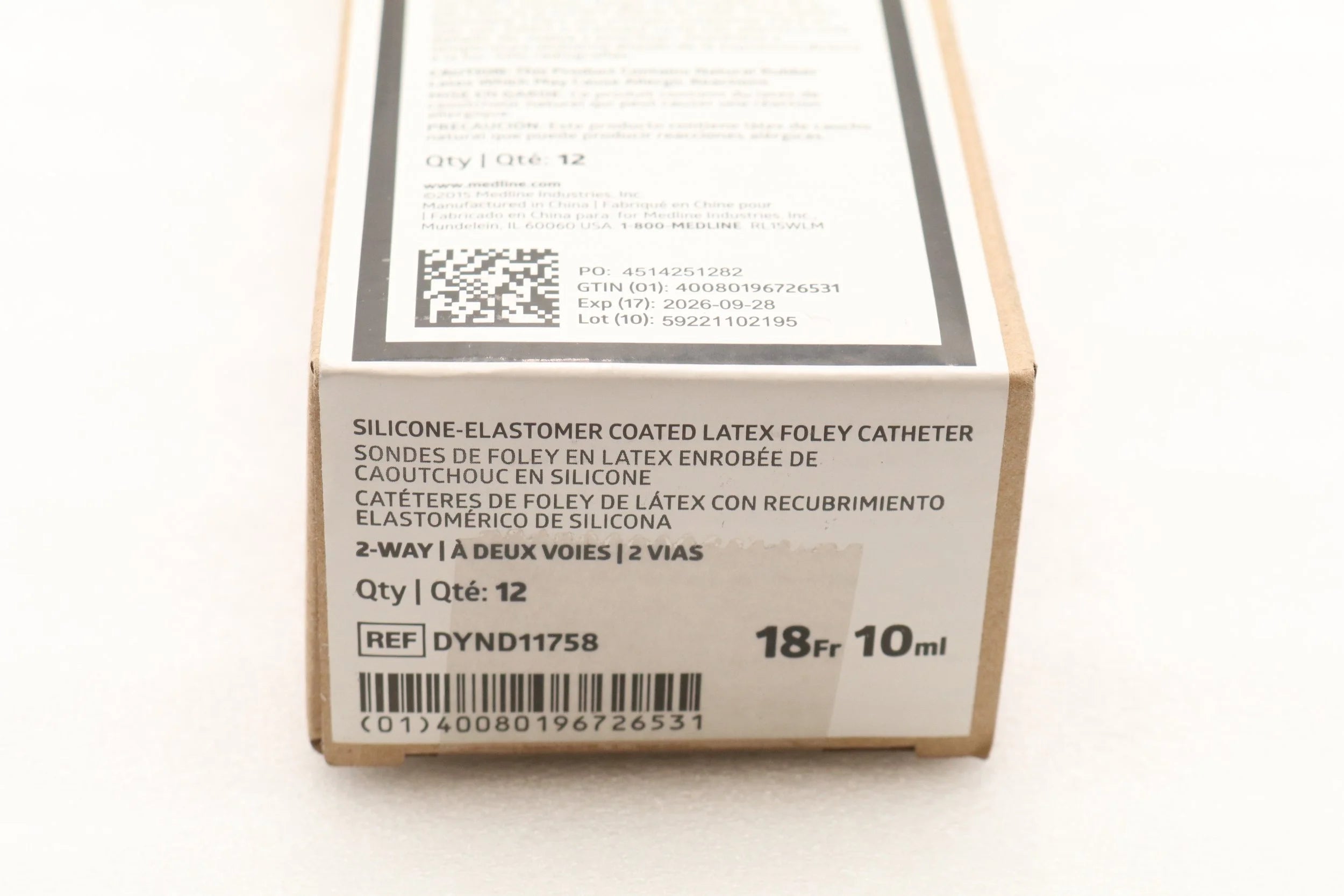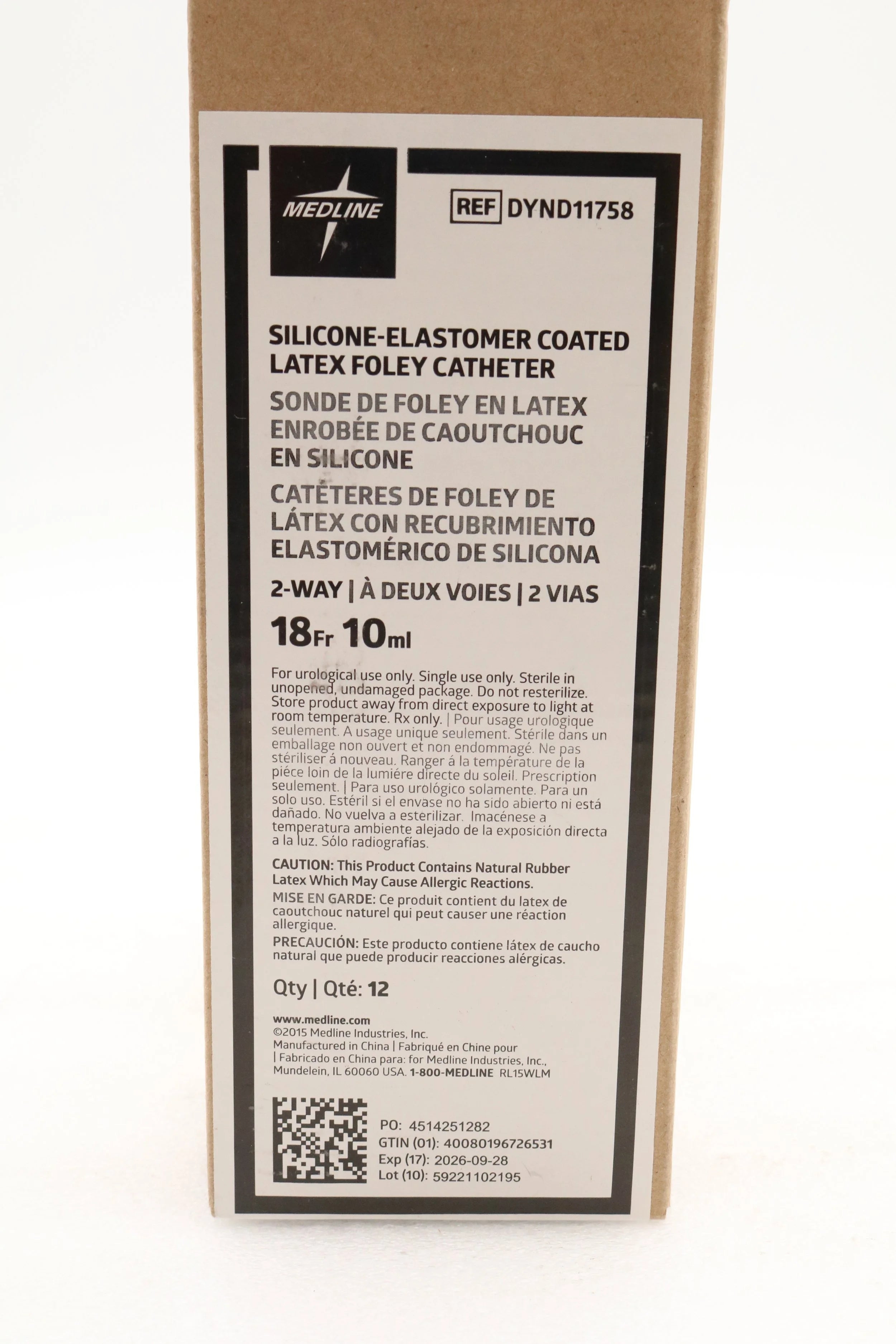 Medline | DYND11758 | BOX OF 12 | 2-Way Silicone-Elastomer Coated Foley Catheter 18 Fr 10cc