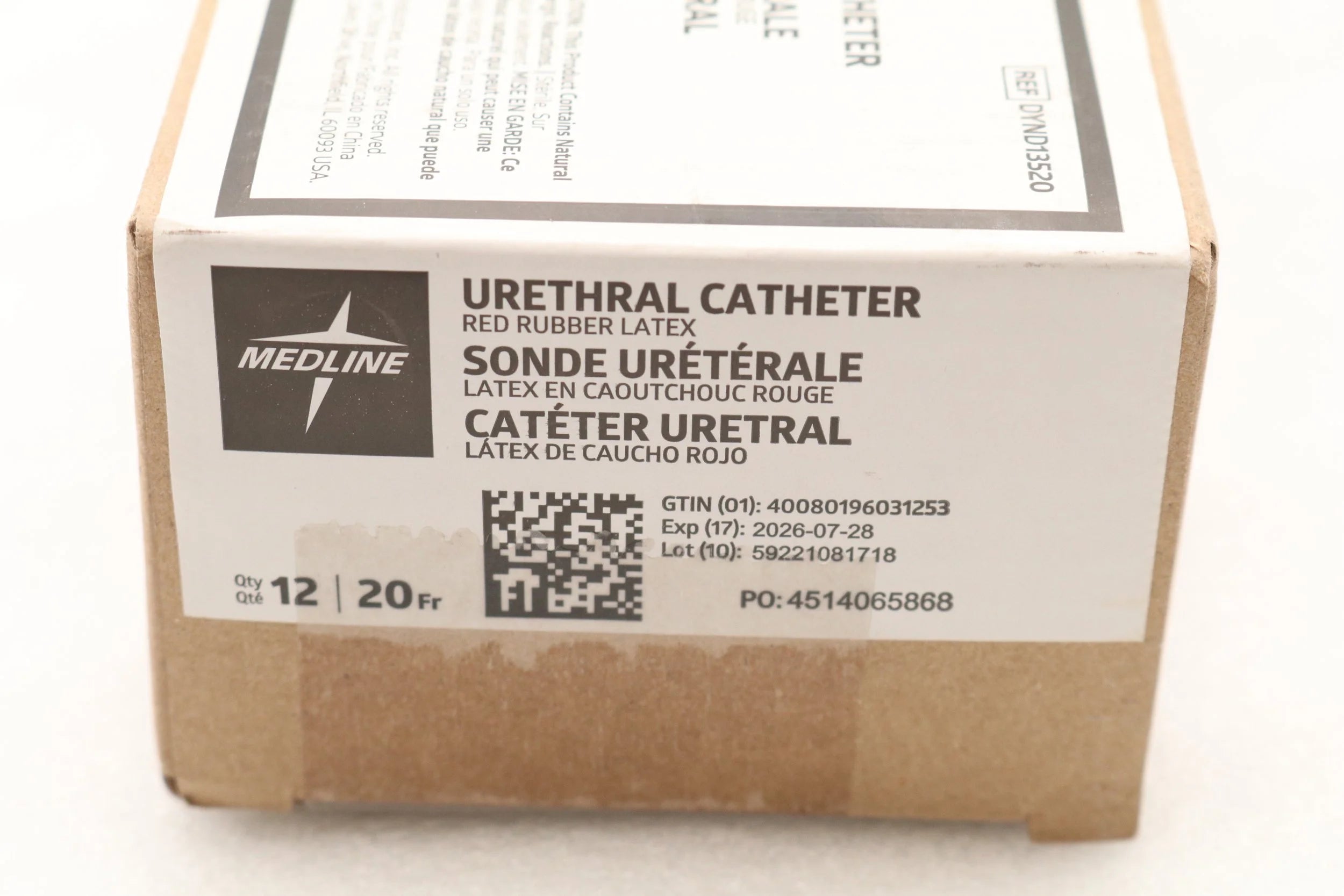 Medline | DYND13520 | BOX OF 12 | Red Rubber Latex All-Purpose Intermittent Catheters - Intermittent / Urethral Red Rubber Catheter, Universal, 20 Fr x 16"
