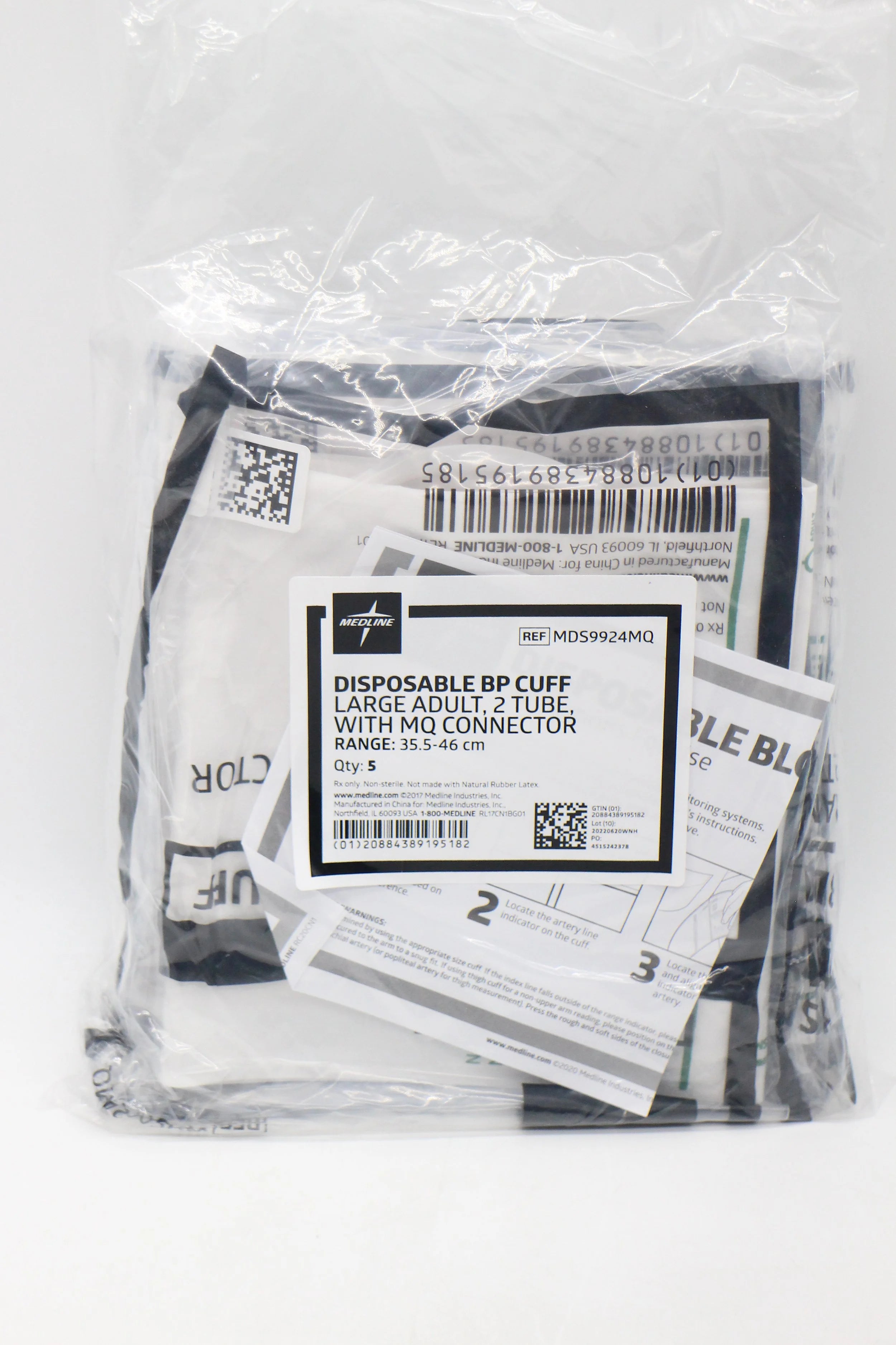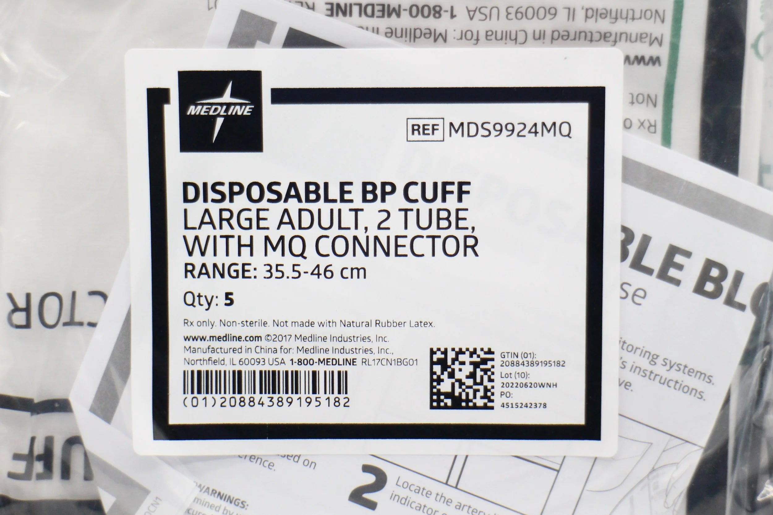Medline | MDS9924MQ | Bag of 5 Disposable BP Cuff Large Adult 2 Tube with MQ Connector