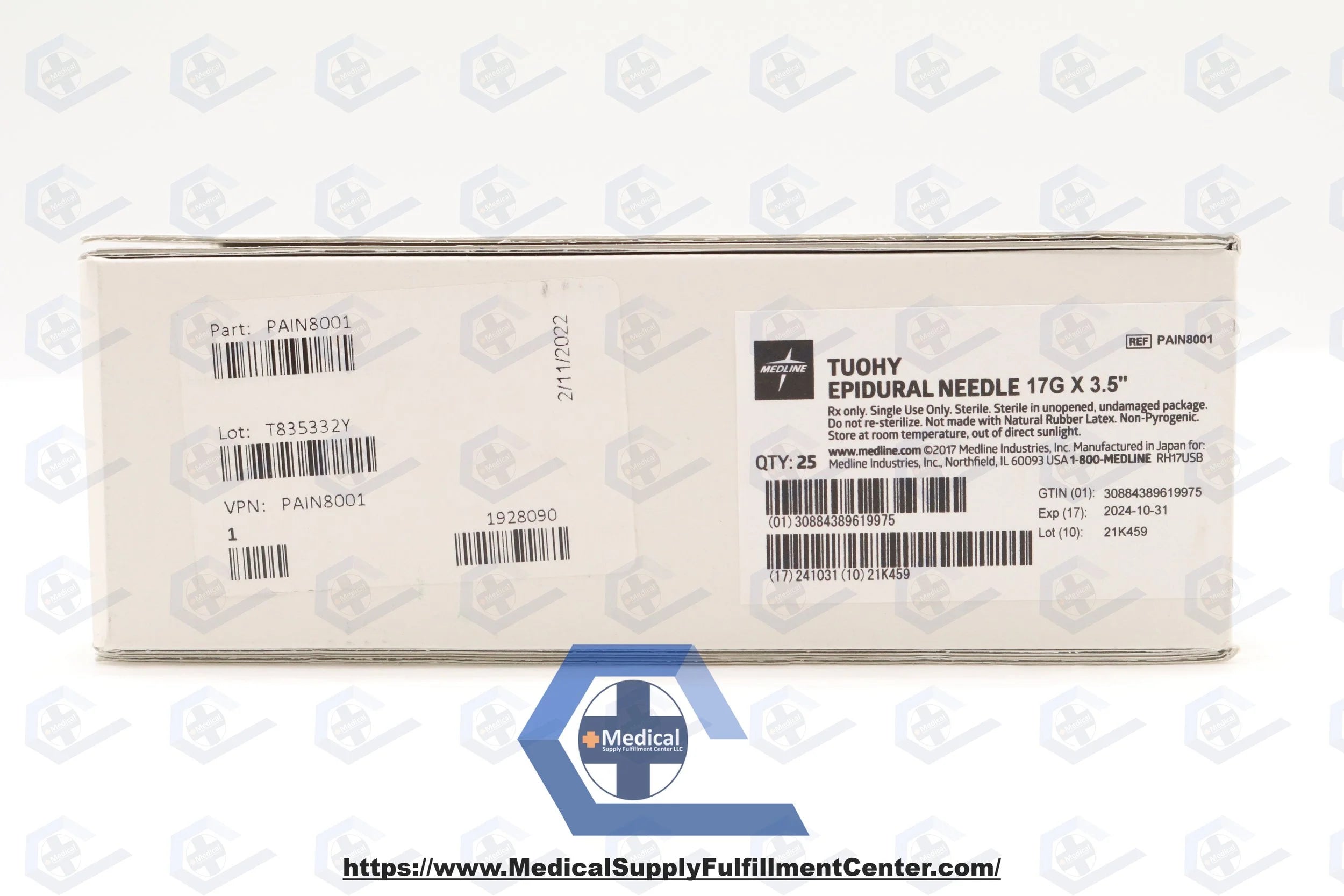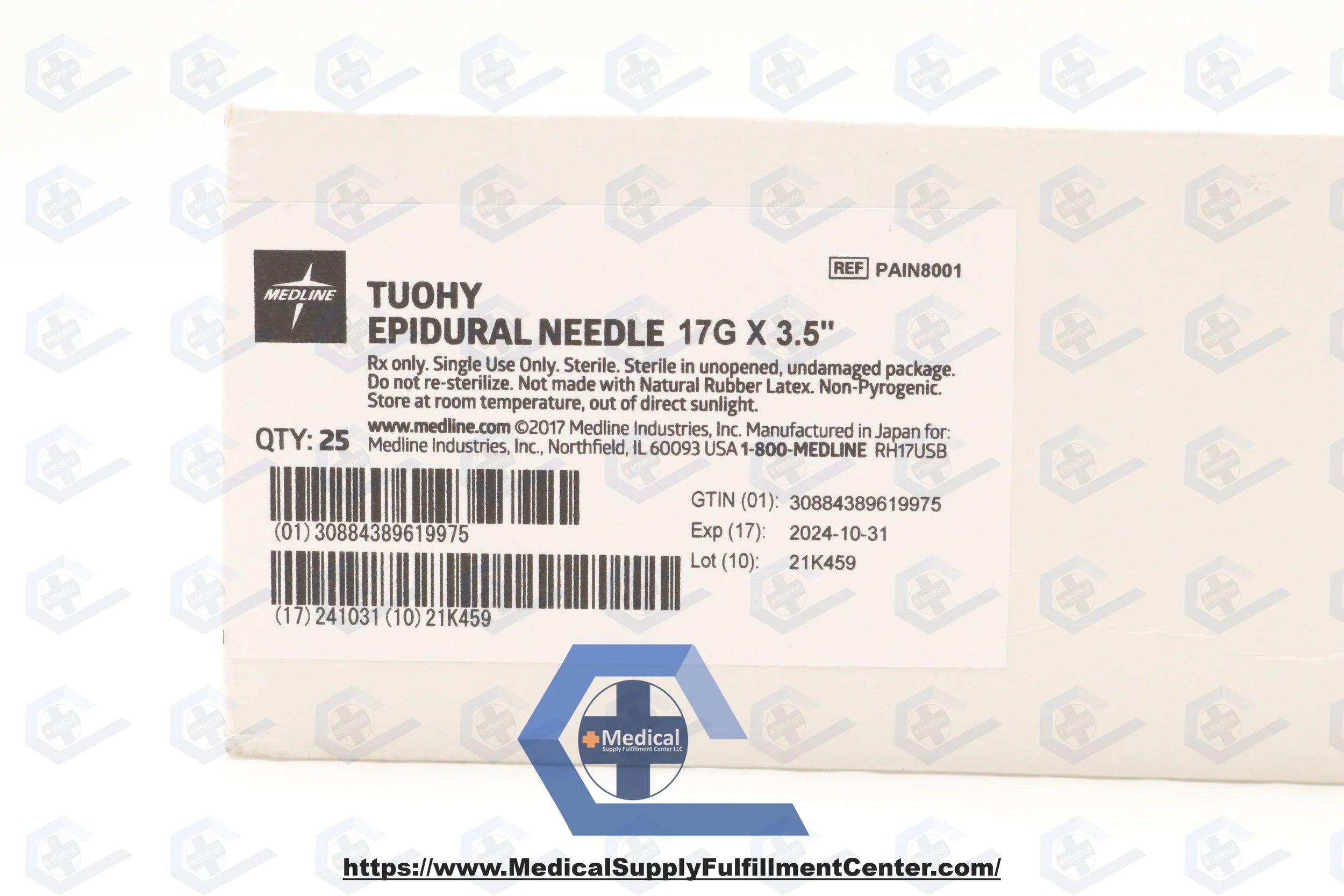 Medline | PAIN8001 | EXPIRED | BOX OF 25 | Tuohy Epidural Needle 17G x 3.5"
