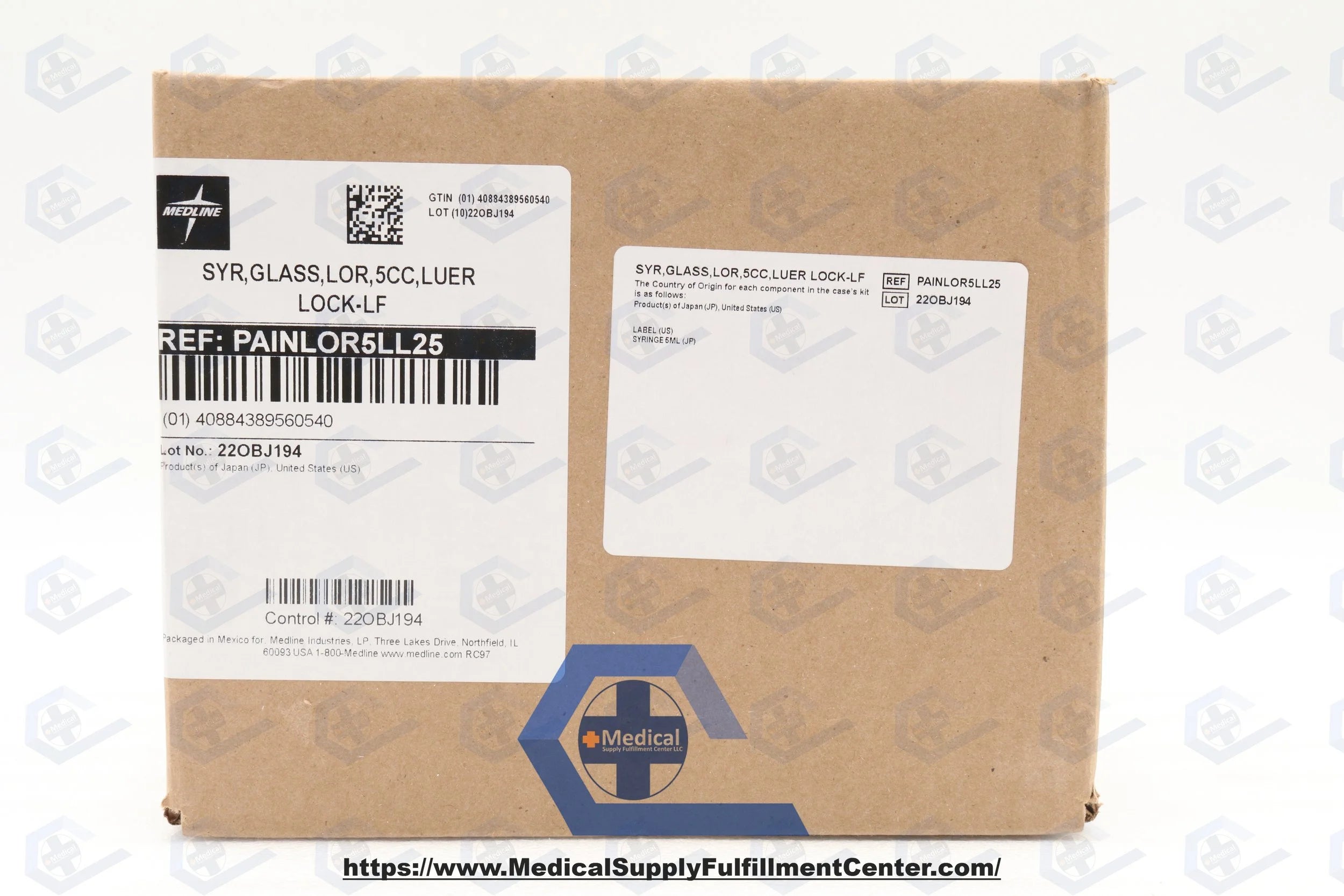 Medline | PAINLOR5LL25 | NO DATE | BOX OF 25 | Syringe, Loss of Resistance (LOR), Glass, Luer Lock, 5 cc