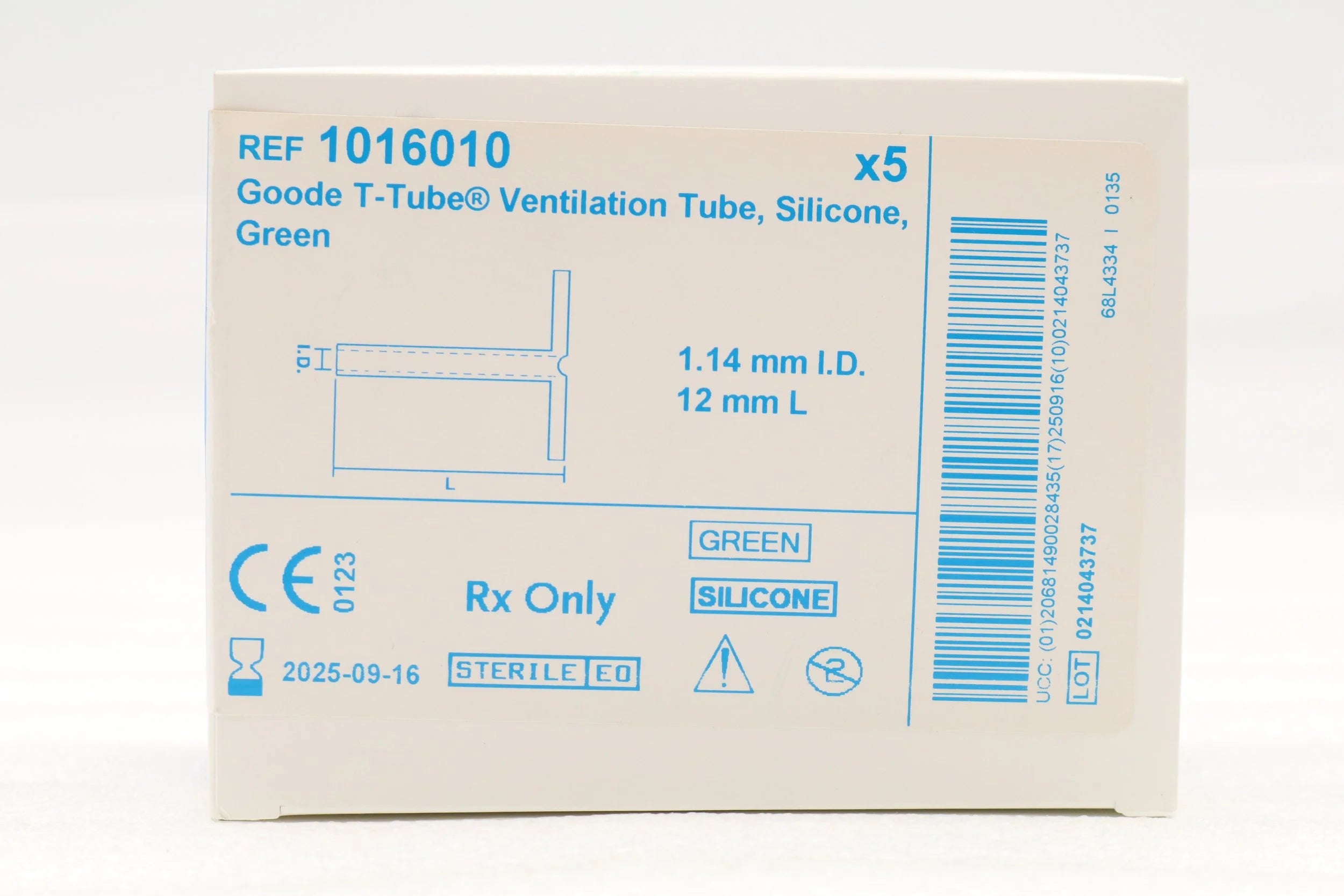 MEDTRONIC | 1016010 | EXPIRED | BOX OF 5 | Goode T-Tube LT Ventilation Tube, Silicone, Green 1.14mm