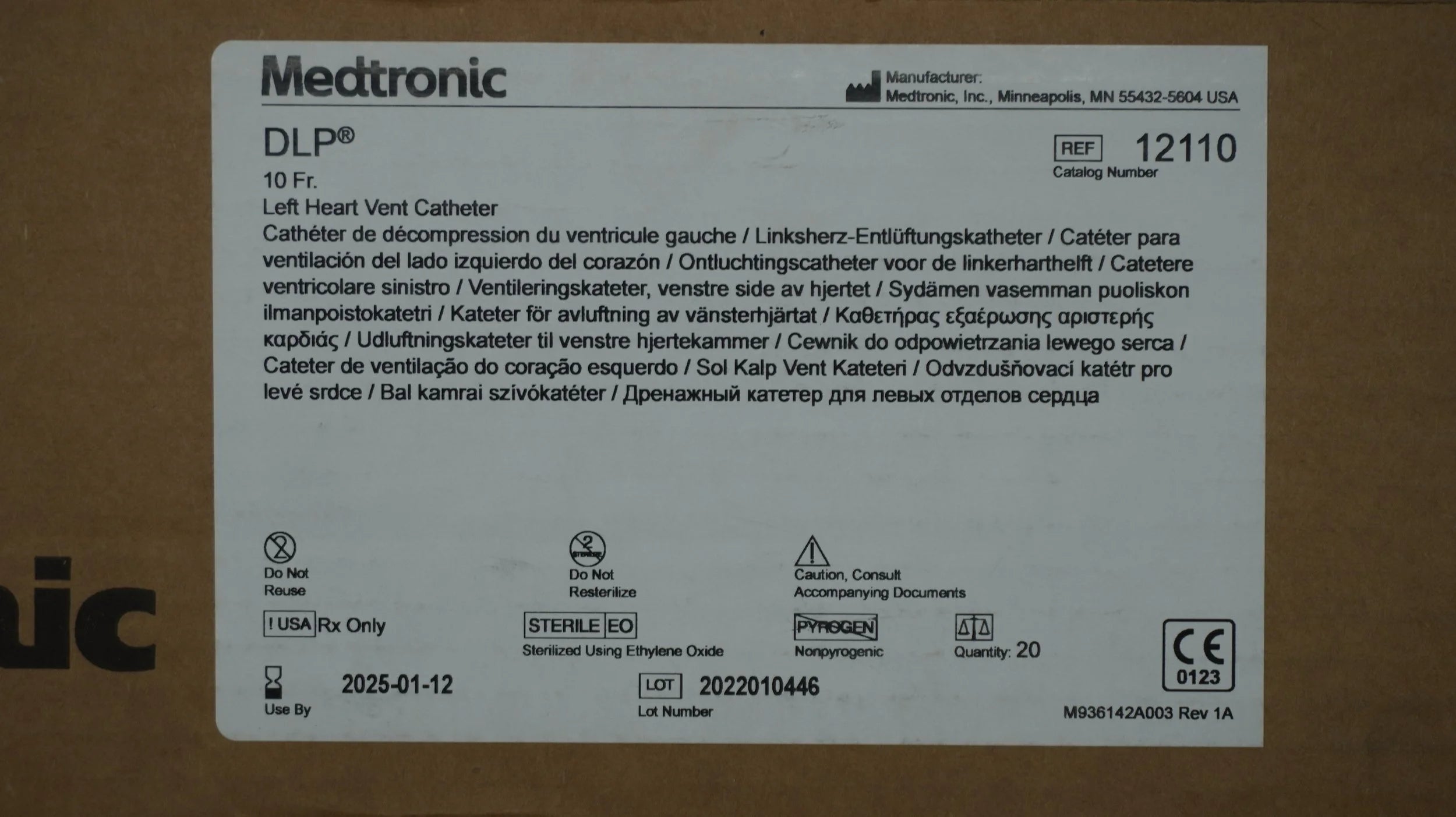 MEDTRONIC | 12110 | EXPIRED | Box of 20 | DLP 10Fr. Left Heart Vent Catheter