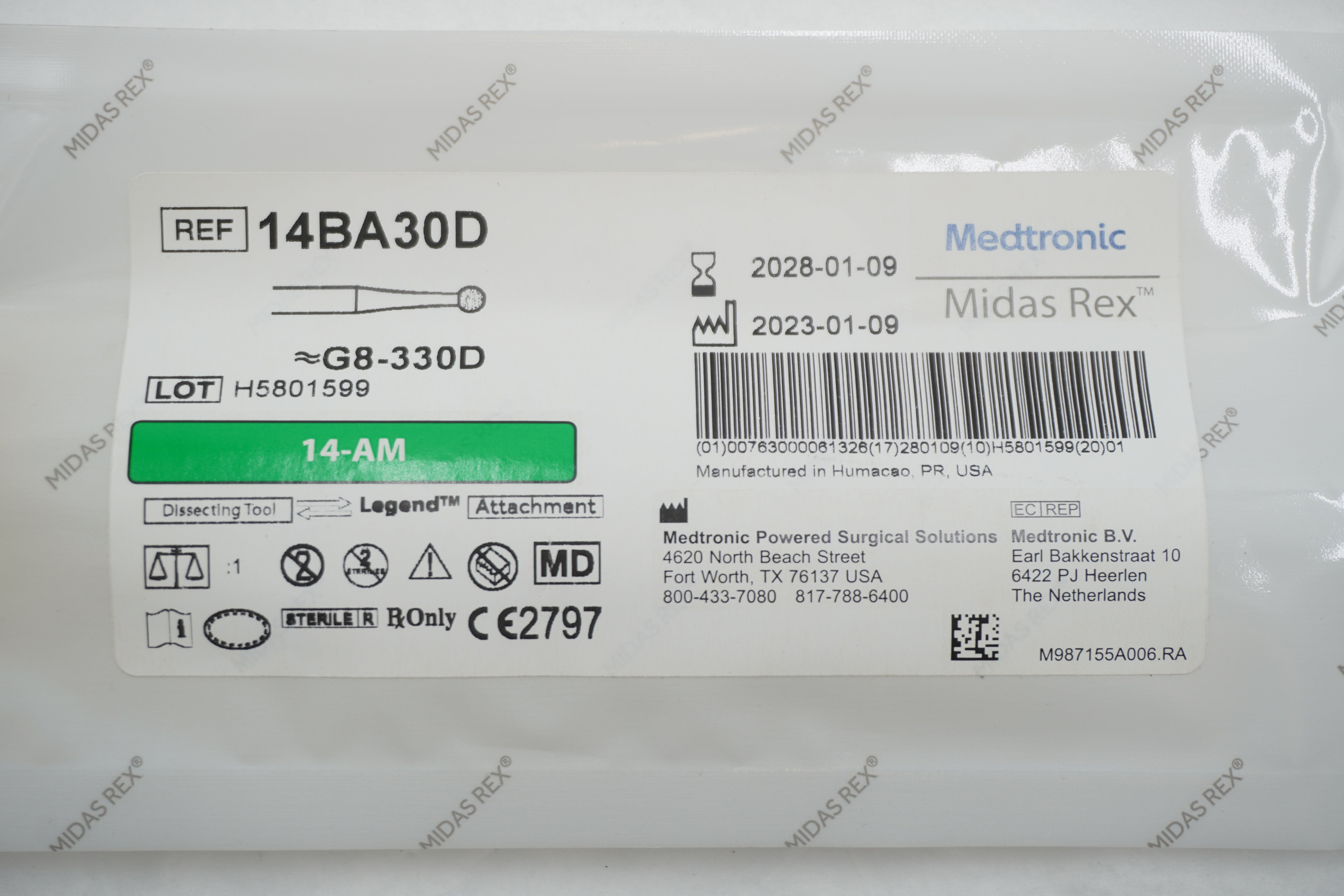 MEDTRONIC | 14BA30D | SHORTDATE | EACHES | Cutting Burr, 14 cm Length, 3 mm Head Diameter, Large Bore, Diamond Ball Tip Style, Single-Use, Sterile