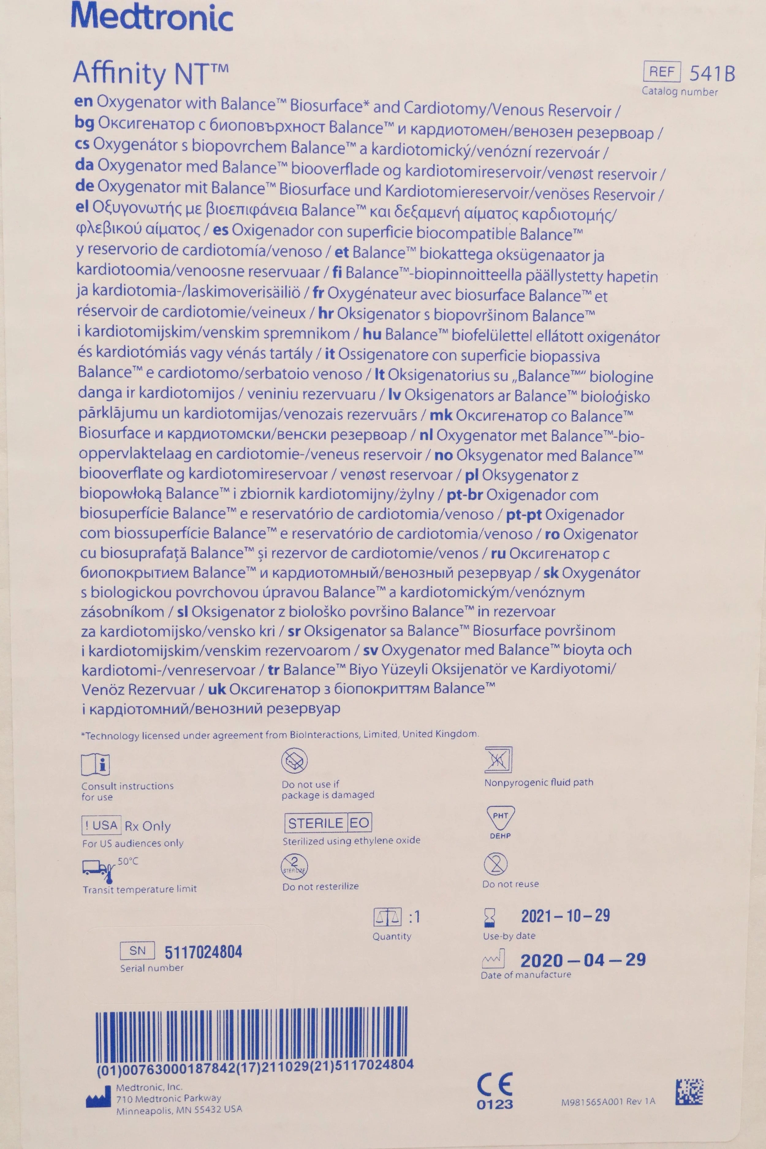 MEDTRONIC | 541B | EXPIRED | CASE OF 2 | Affinity NT Oxygenator with Balance Biosurface and Venous Reservoir