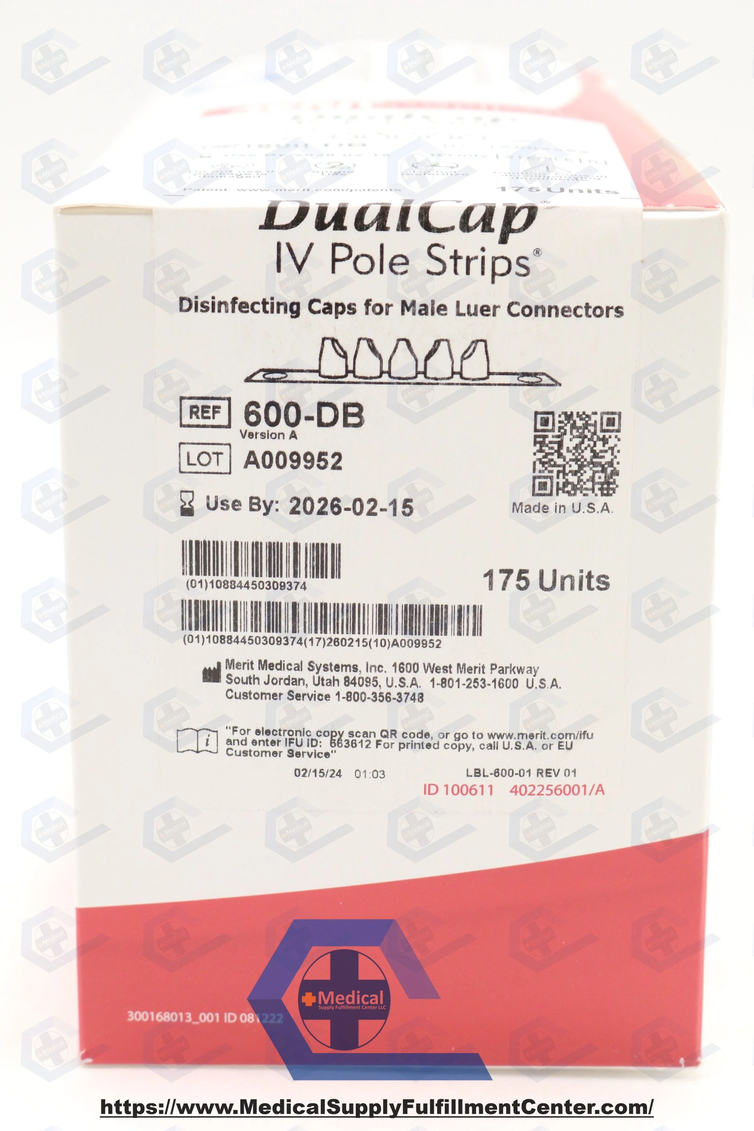 MERIT MEDICAL | 600-DB | IN-DATE | Box of 175 | Dual Cap IV Pole Strips Disinfecting Caps For Male Luer Connectors