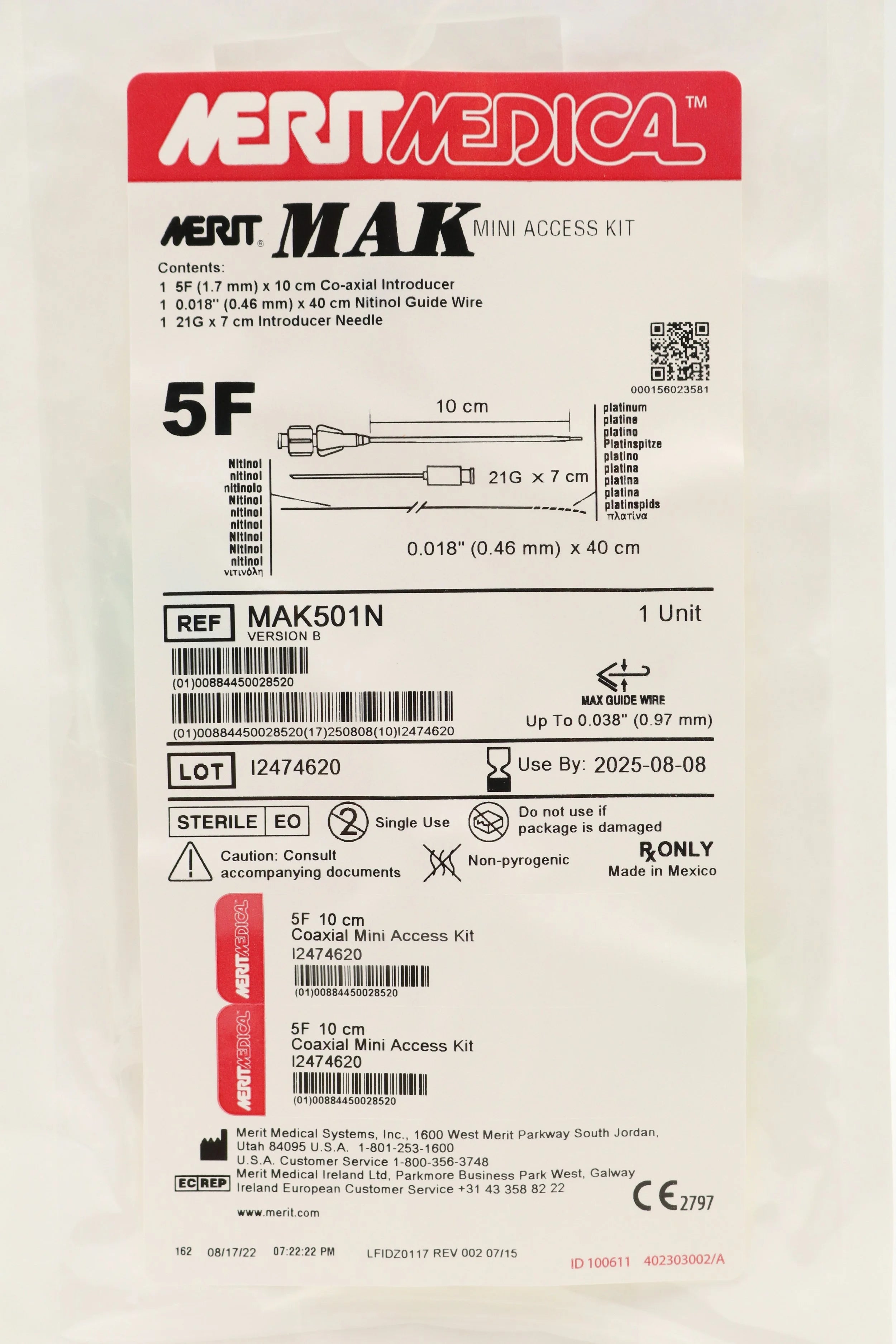 MERIT MEDICAL | MAK501N | SHORT DATE | EACHES | MAK MINI ACCESS KIT CO-AXIAL INTRODUCER Standard NT PT 5F x 10cm