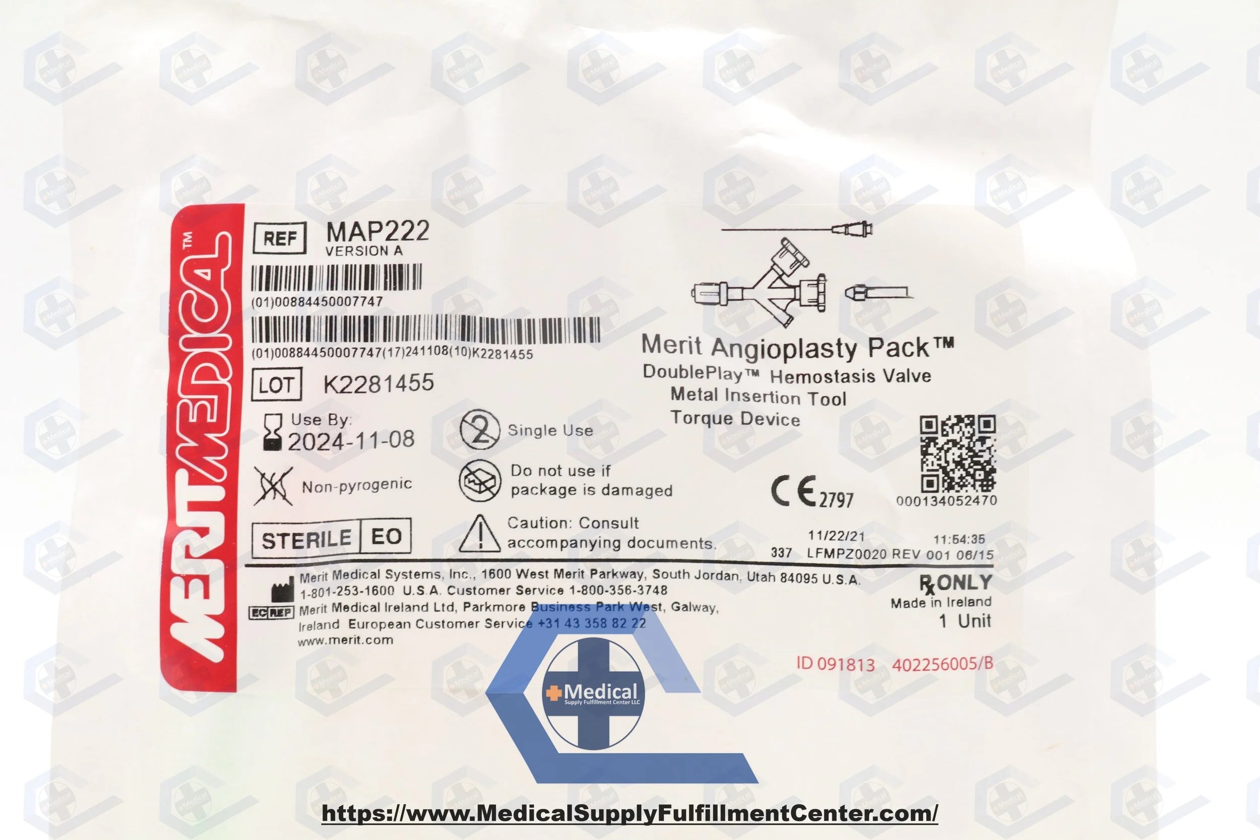 Merit Medical | MAP222 | EXPIRED | EACHES | DoublePlay Double-Y Hemostasis Valve w/Metal Guide Wire Insertion Tool & Torque Devices