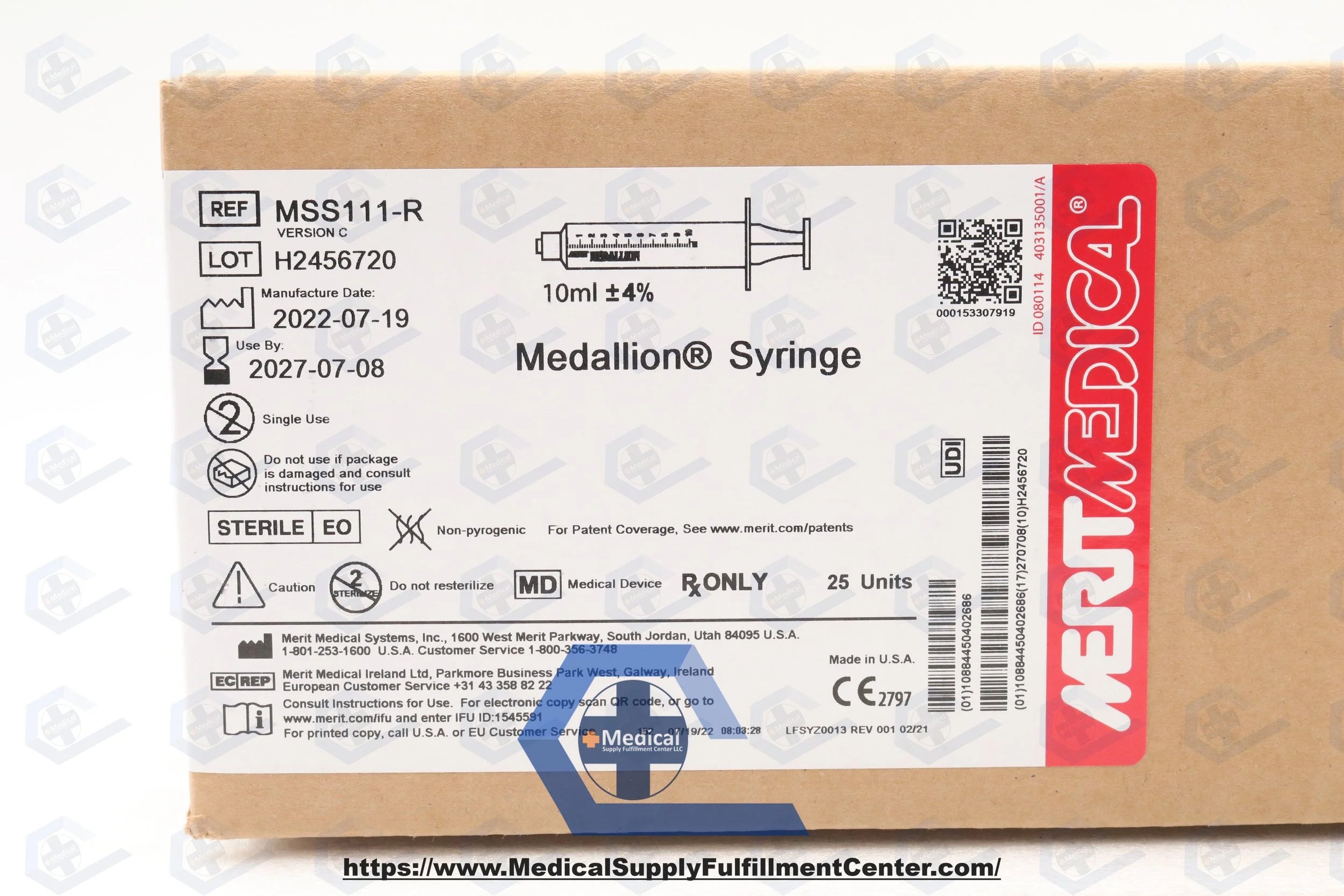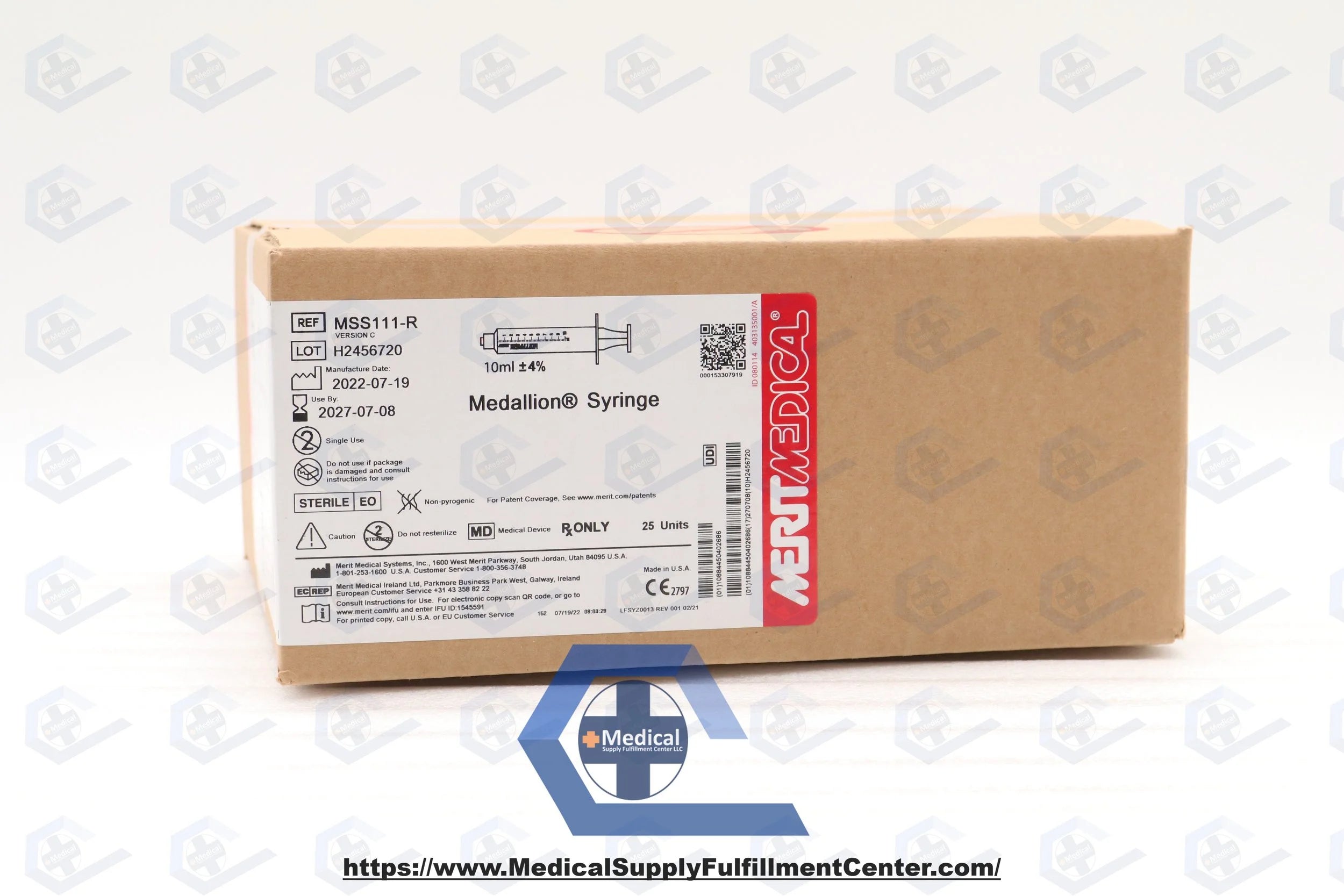 MERIT MEDICAL | MSS111-R | IN-DATE | BOX OF 25 | MEDALLION SYRINGE 10 ML