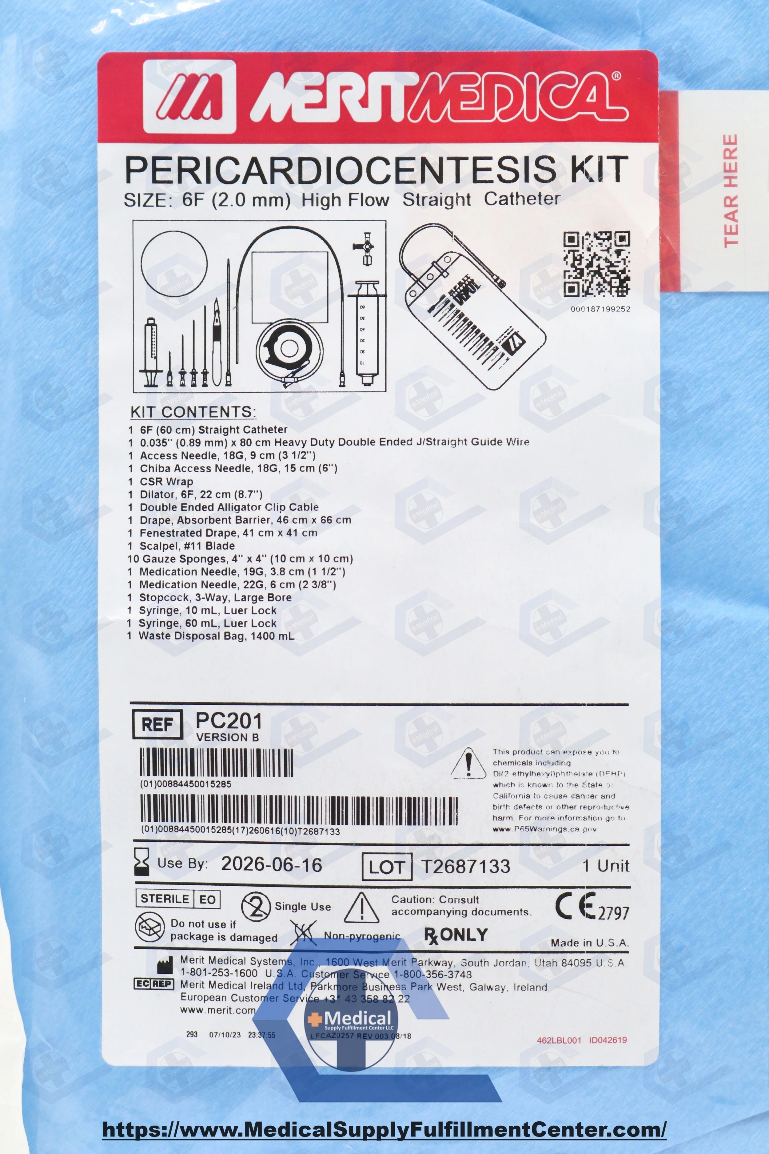 Merit Medical | PC201 | PERICARDIOCENTESIS KIT, STRT CE MARK TRAY 6FR 60CM