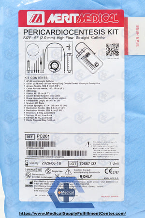 Merit Medical | PC201 | INDATE | EACHES | PERICARDIOCENTESIS KIT, STRT CE MARK TRAY 6FR 60CM