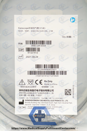 Mindray | 0683-04-0004 | Eaches | 10 ft. NIBP Hose 0683-04-0004