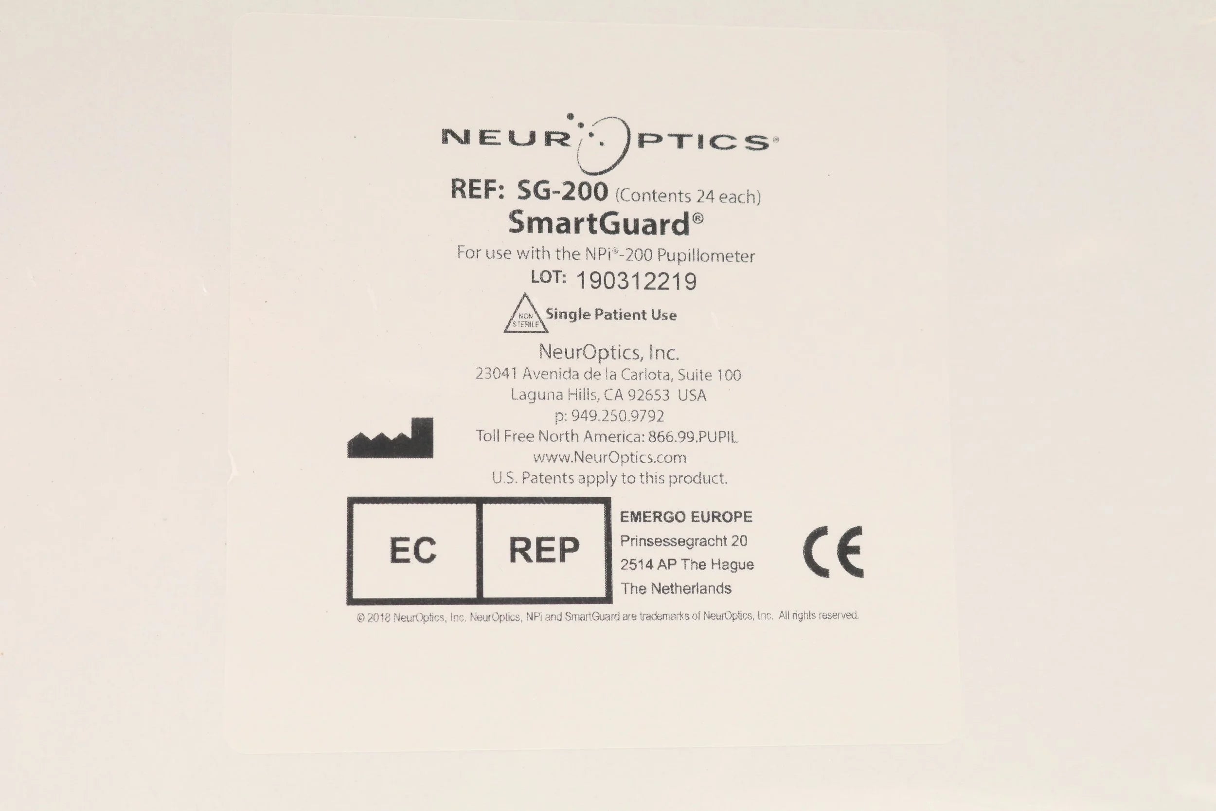 NeurOptics | SG-200 | NO-DATE | EACHES | SmartGuard for NPi Pupillometers