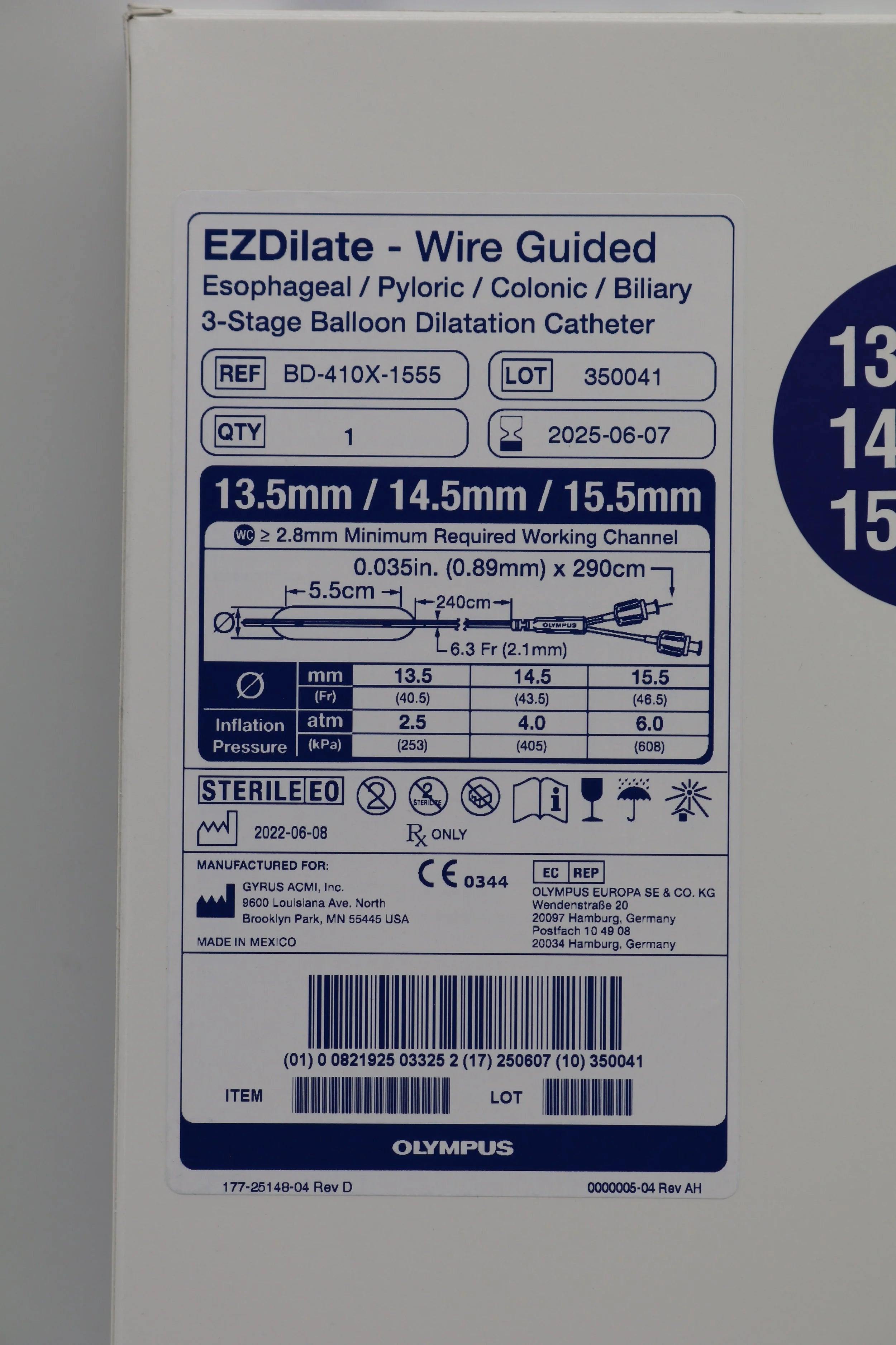 Olympus | BD-410X-1555 | EZDilate Wire Guided Esophageal Pyloric Colonic Biliary 3-Stage Balloon Dilatation Catheter 13.5mm 14.5mm 15.5mm