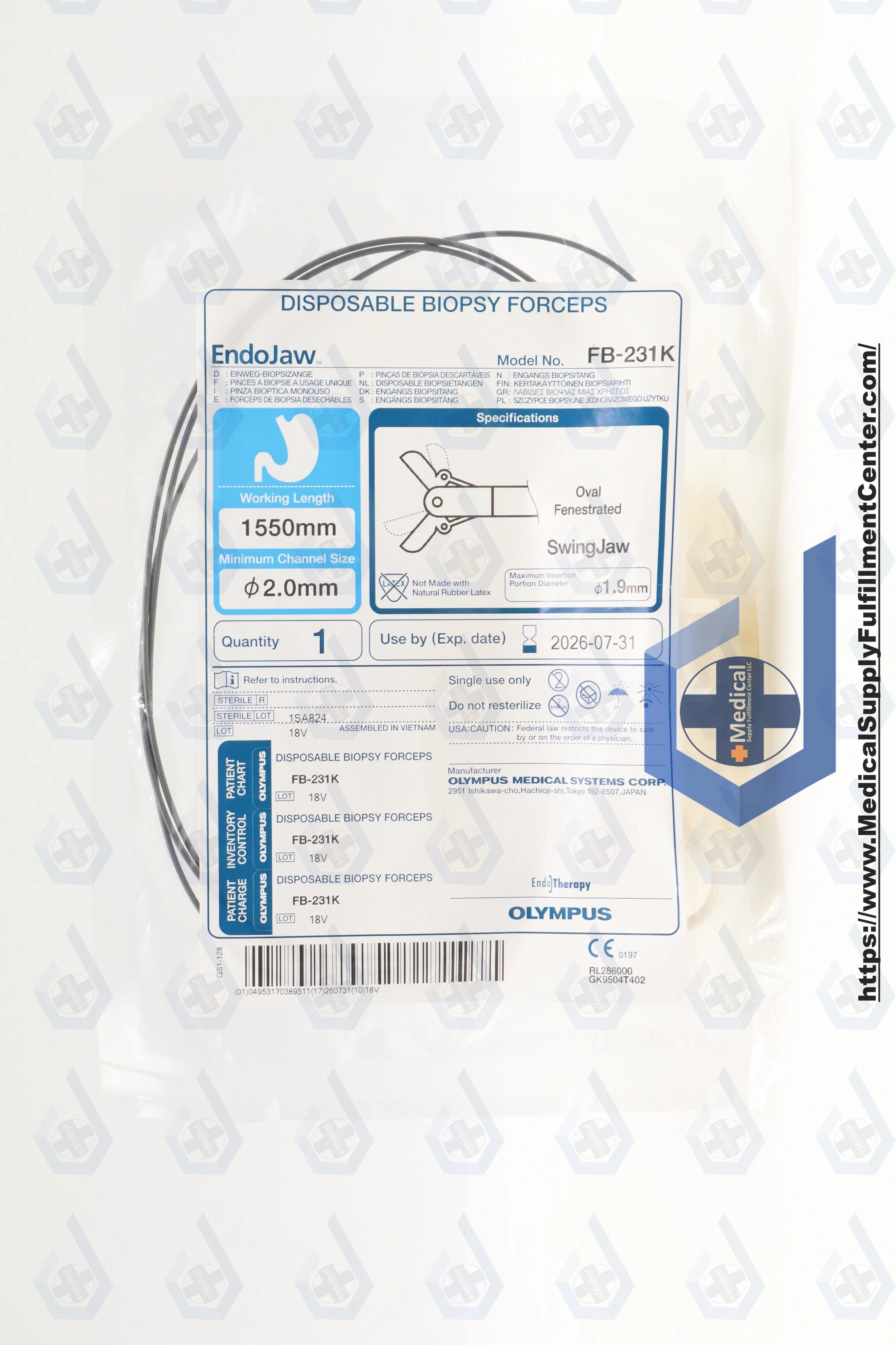 OLYMPUS | FB-231K | IN-DATE | EACHES | Biopsy Forceps, 240 cm Length, Jumbo, Orange, 3.2 mm Minimum Working Channel Size, 2.8 mm OD Jaw, with Needle, Single-Use