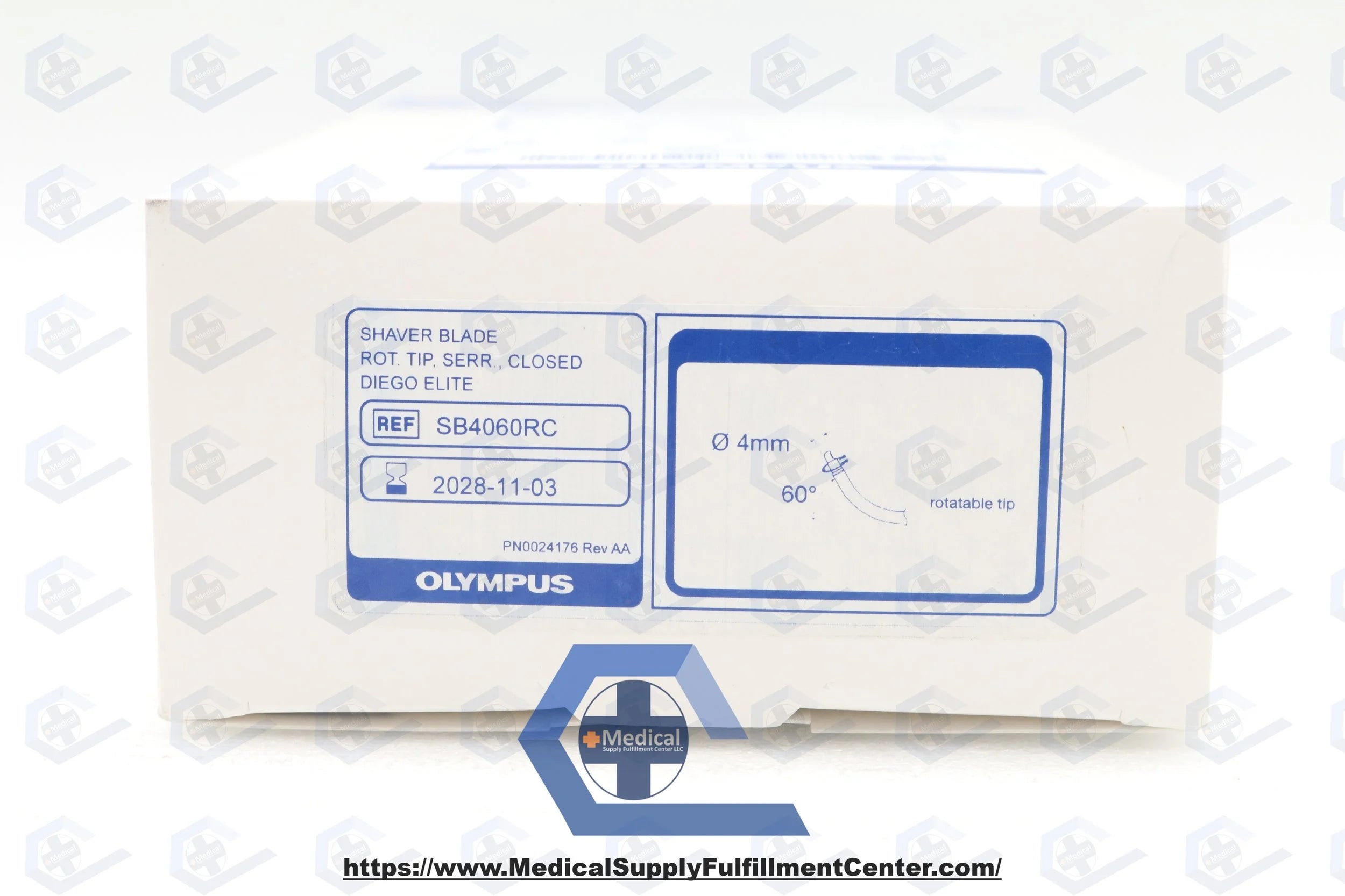 OLYMPUS | SB4060RC | IN-DATE | BOX OF 5 | Shaver Blade, 4 mm dia., Standard, Curved, 60° Angle, Serrated Edge Form, Rotatable, Closed Window, For Diego Elite Multidebrider