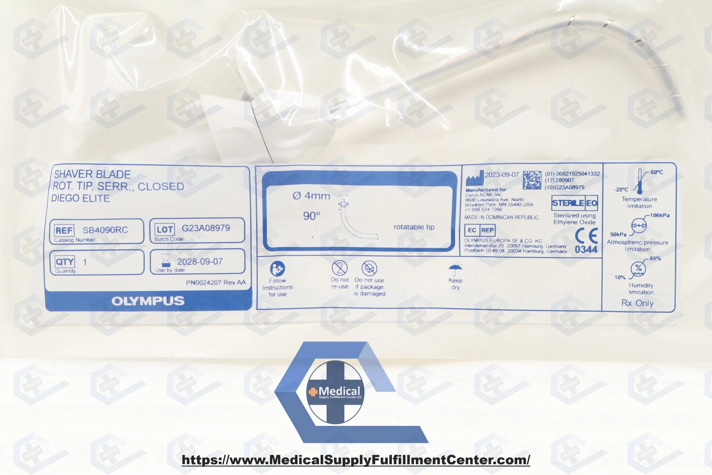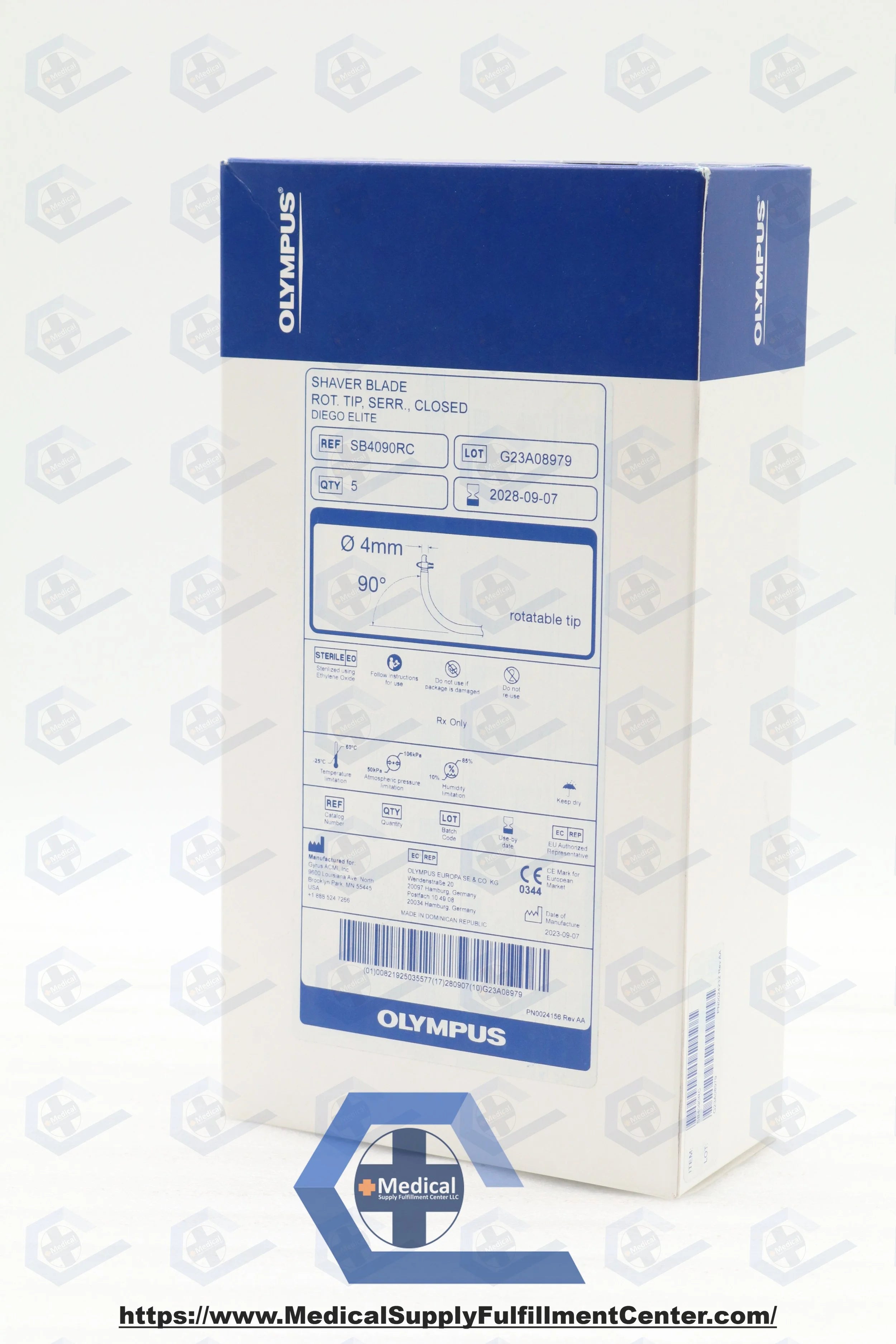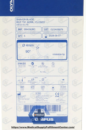 OLYMPUS | SB4090RC | IN-DATE | BOX OF 5 | Shaver Blade, 4 mm dia., Standard, Curved, 90° Angle, Serrated Edge Form, For Diego Elite Multidebrider
