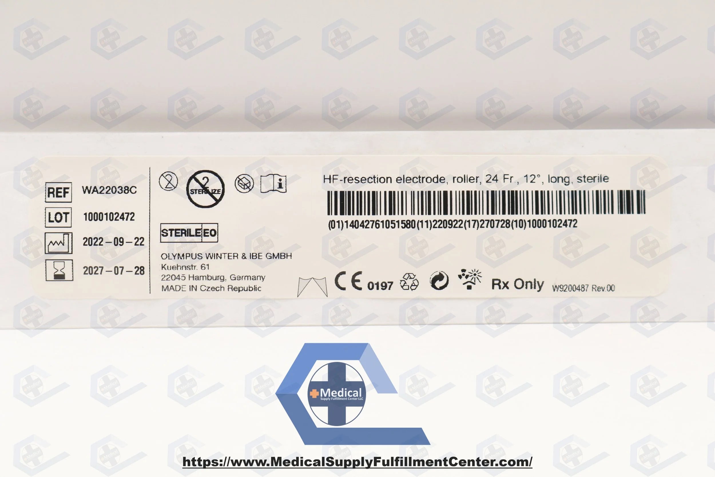 Olympus | WA22038C | IN DATE | Eaches | Olympus HF-Resection Electrode, 24 Fr Size, 12° Long Roller Tip, Sterile, Single-Use, For OES Pro Resectoscope