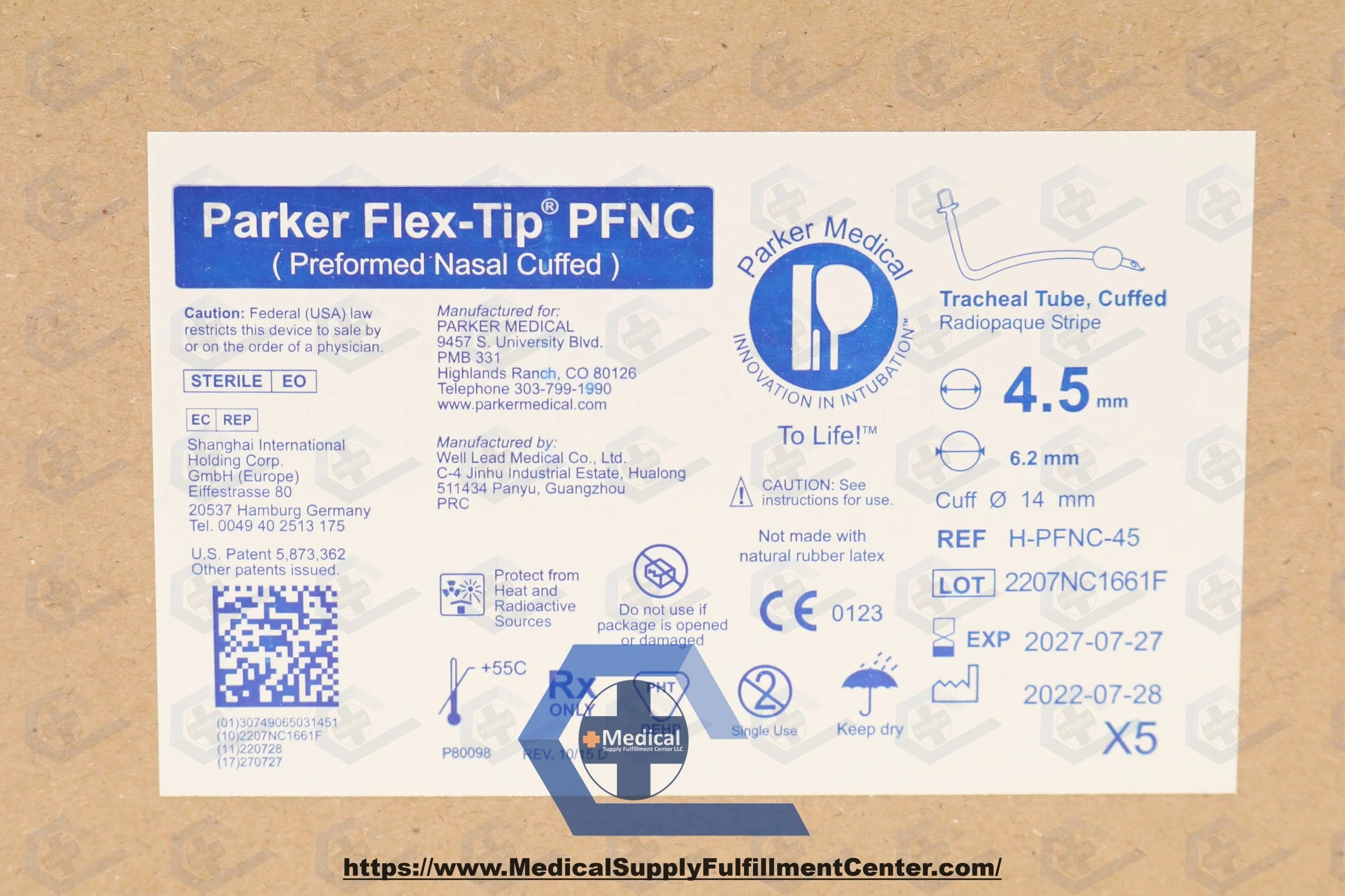 PARKER MEDICAL | H-PFNC-45 | INDATE | BOX OF 5 | Preformed Flex-Tip Tracheal Tubes - Preformed Cuffed Nasal Tracheal Tube, 4.5 mm