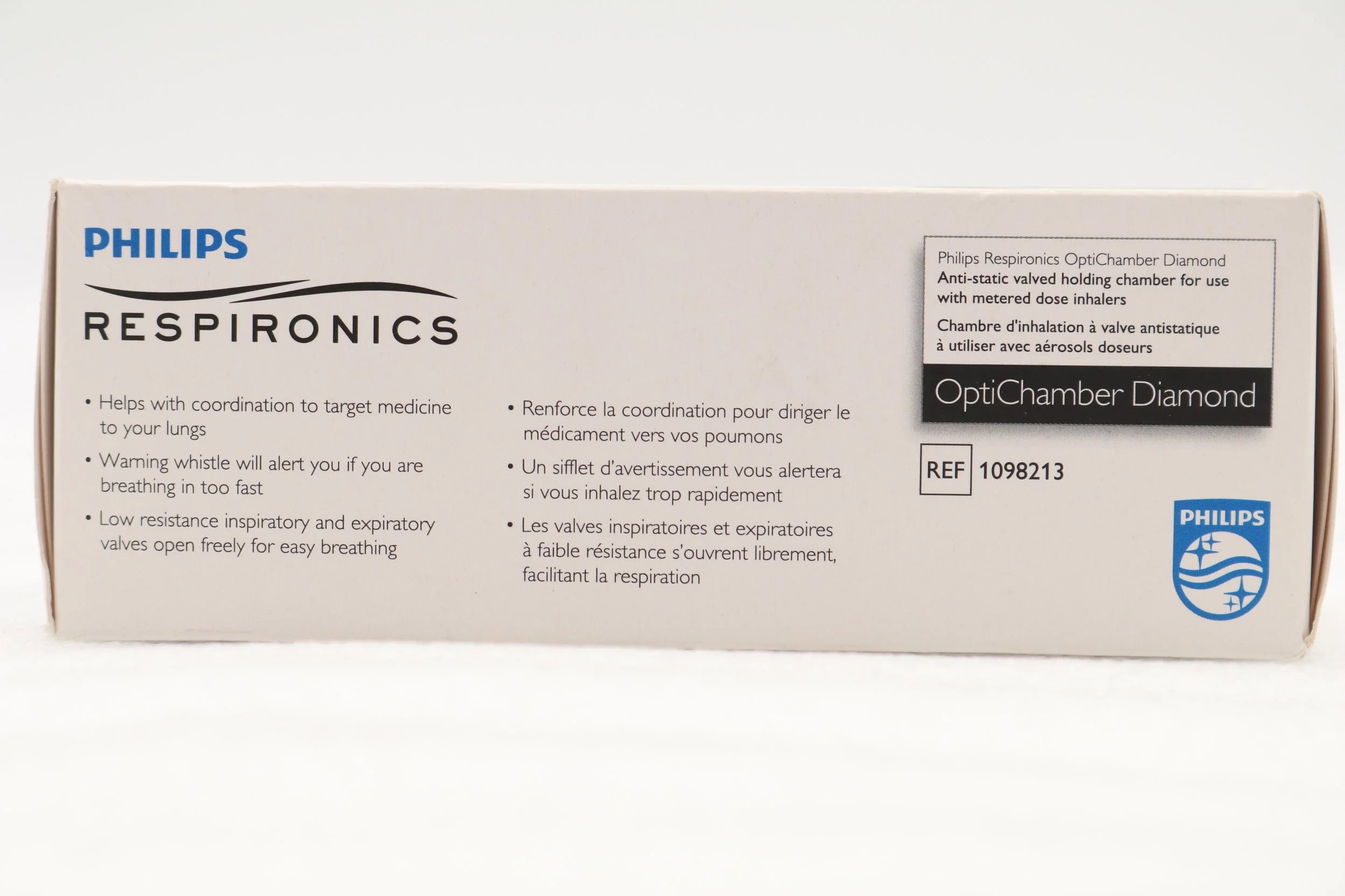 Philips | 1098213 | Respironics OptiChamber Diamond VHC MDI Inhaler Spacer Anti-static Valved Holding Chamber
