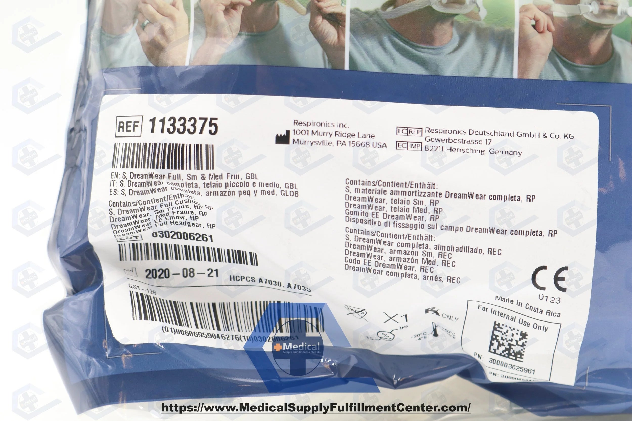 Respironics | 1133375 | NO DATE | EACHES | Philips Dreamwear Small Full Face Mask Fit Pack with Headgear Medium Frames with Small Cushion