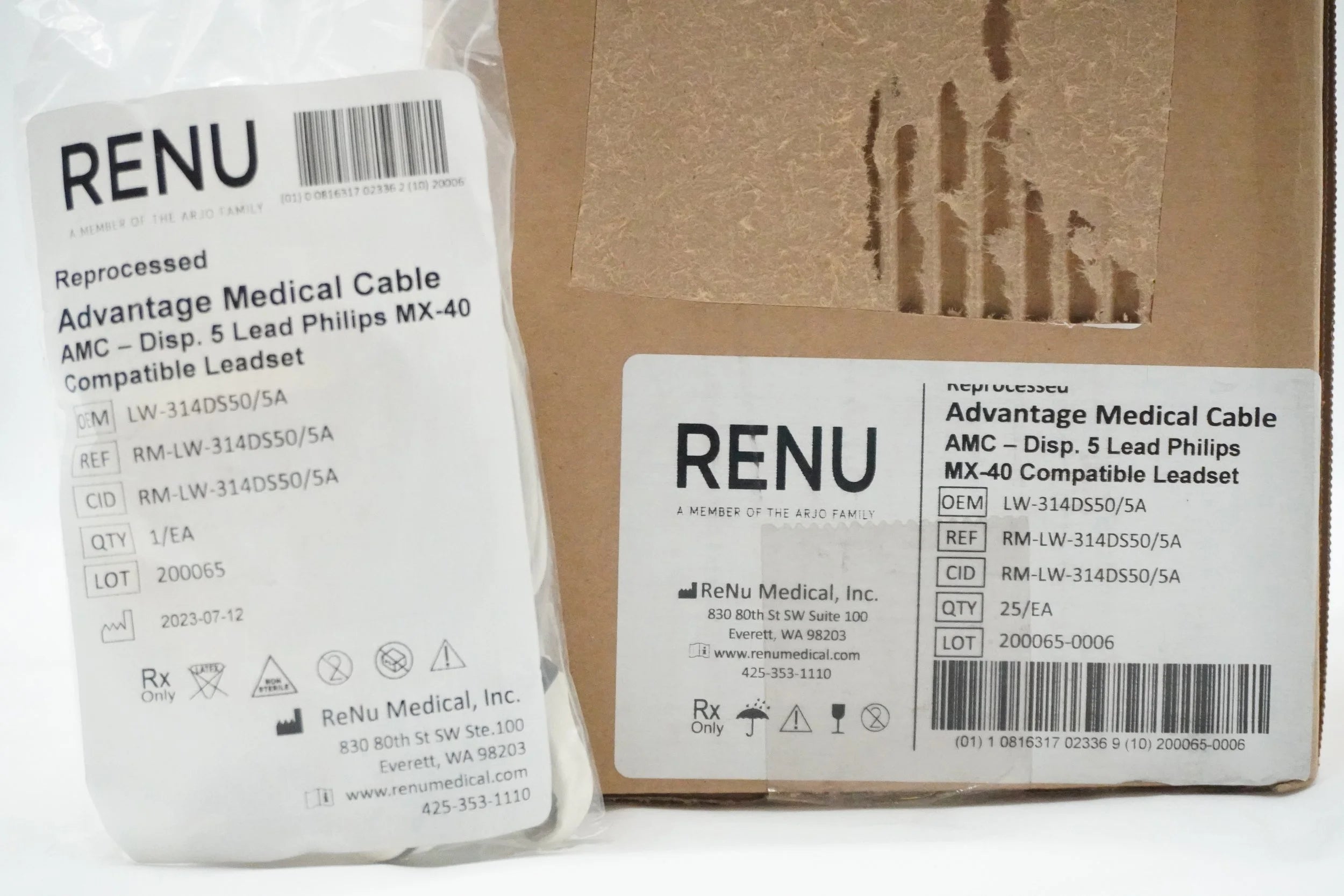 Renu Medical | LW-314DS50/5A | BOX OF 25 | Advantage Medical Cable AMC 5 Lead Philips MX-40 Compatible Leadset