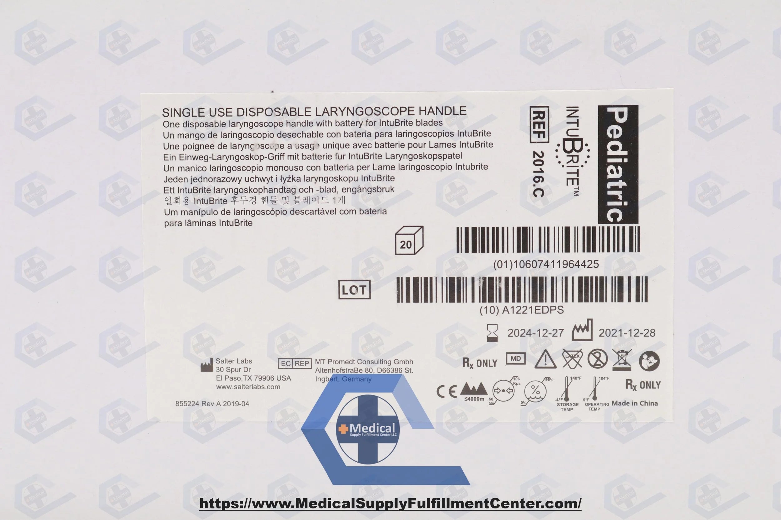 Salter Labs | 2016.C | SHORTDATE | BOX OF 20 | IntuBrite Disposable Laryngoscope Handle, Size Pediatric
