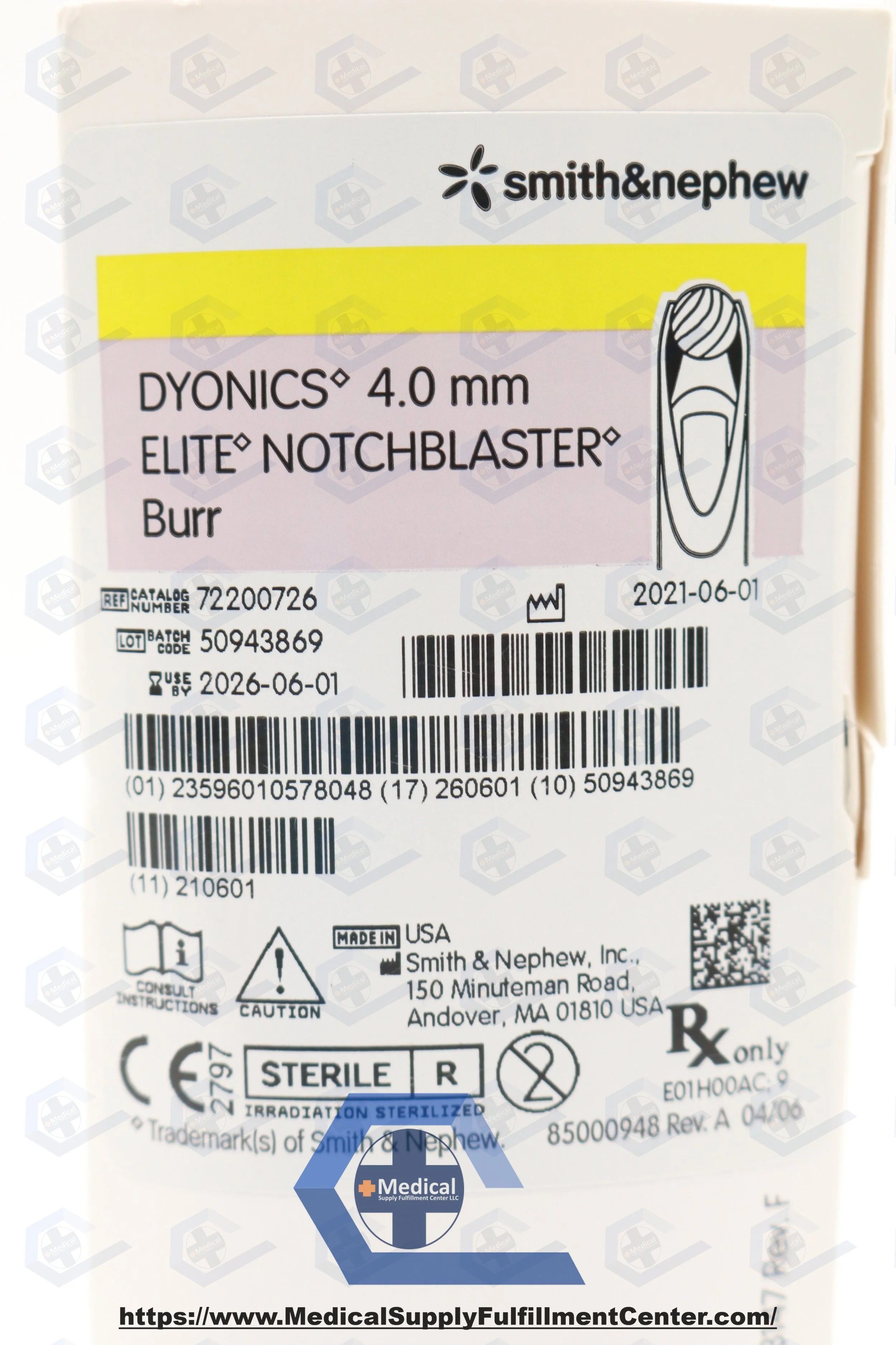 Smith & Nephew | 72200726 | IN-DATE | BOX OF 6 | DYONICS 4.0 mm ELITE NOTCHBLASTER Burr